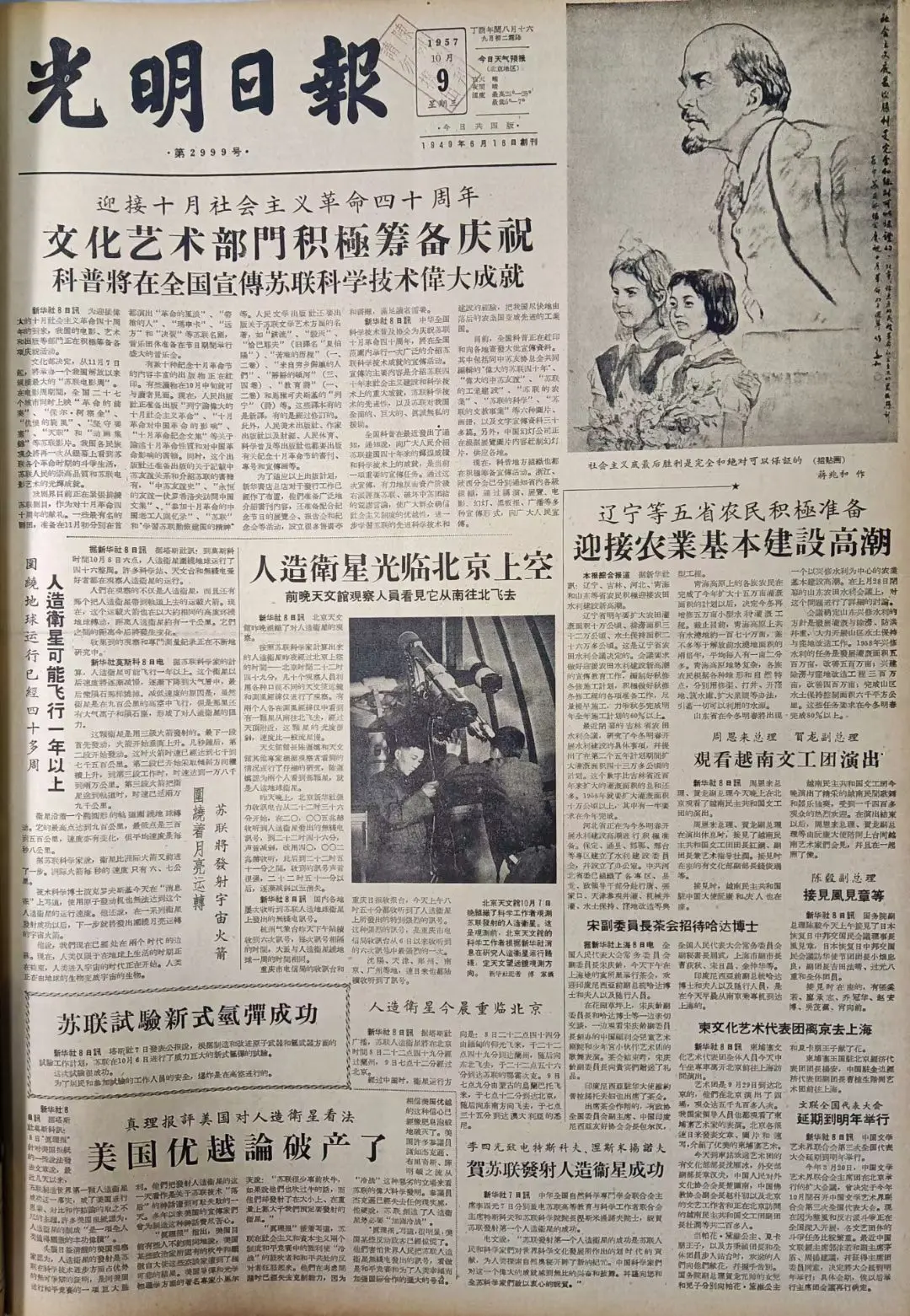 老报上的今天---六十八年前的1957年10月9日《光明日报》报道:我...