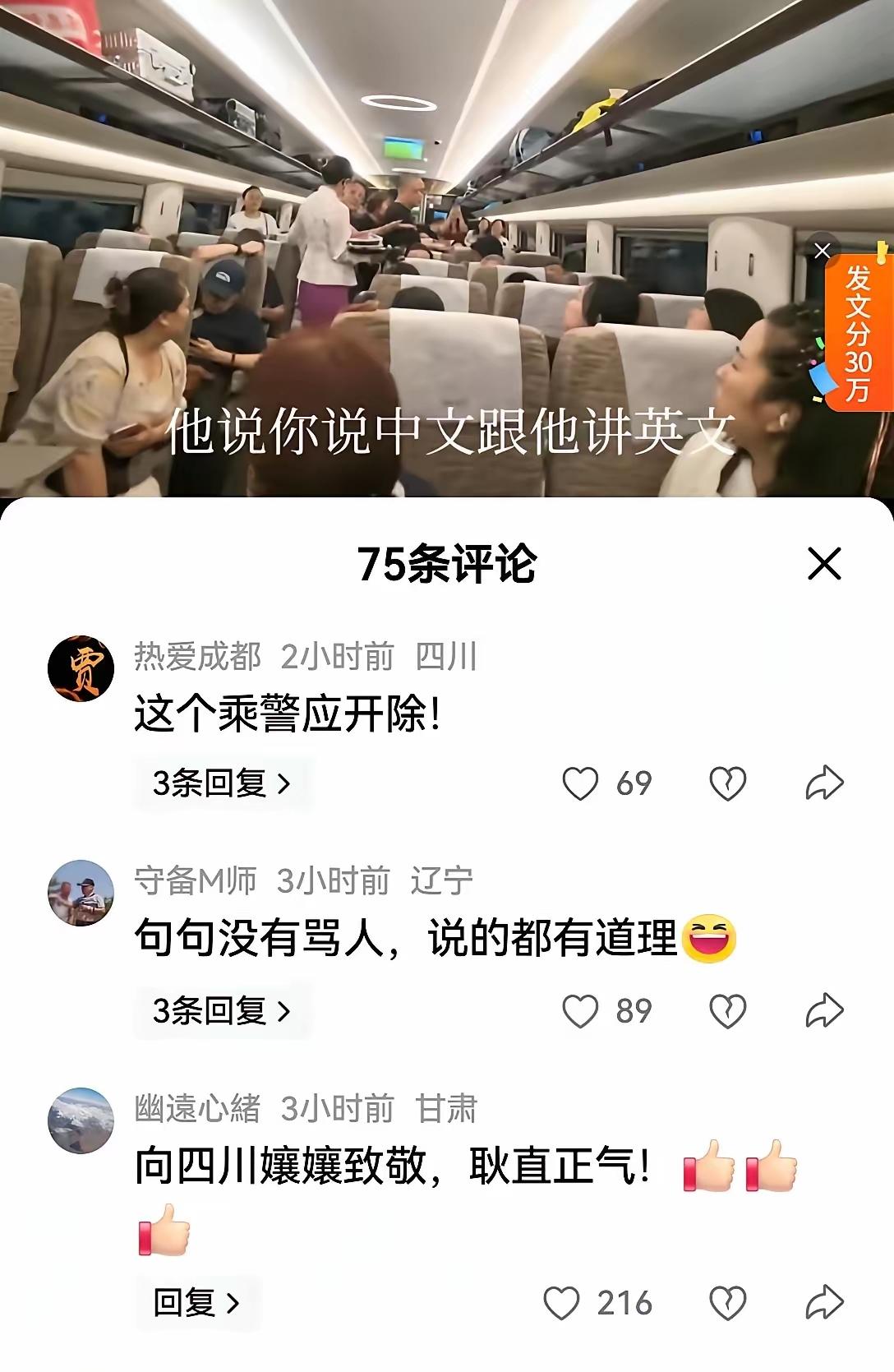 家人们,最近刷到台湾乘客在高铁上被四川孃孃怼到哑口无言的视频,真的笑不活又解气!这台湾大哥明明中文说得溜,偏要拽英文装“外宾”,把二等座座椅放到底,后排乘客腿都没地儿放,提醒还不乐意。 关键时刻成都孃孃直接开腔:“这是外国友人?买个二等座想享一等座的待遇,要不我们给你众筹个专座?”句句带梗又戳中要害,怼得大哥脸一阵红一阵白,最后乖乖把座椅调回去了 。 其实这事哪分什么地域,没素质到哪都招人嫌!现在咱们内地城市发展得越来越好,成都的便利和繁华大家有目共睹,但真正让人佩服的,是遇到不讲理的事,有人敢站出来主持公道的底气。 你们身边有没有遇到过这种爱装又没素质的人?要是你在现场,会怎么怼回去?来评论区聊聊~