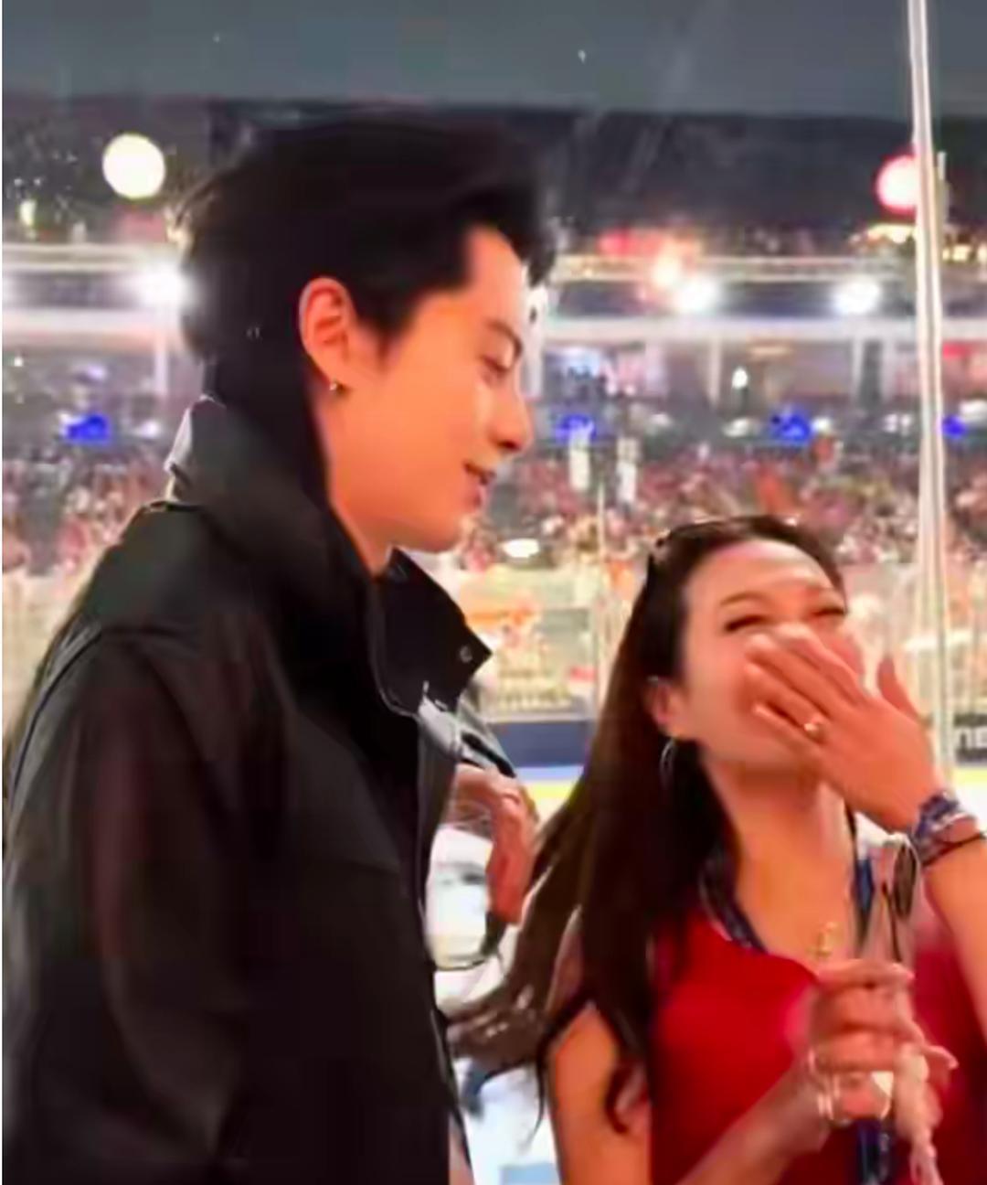 王鹤棣与林心儿新加坡F1合影,棣棣绅士风度满分,林家千金漂亮大方,身材又好,身材保持不错。
