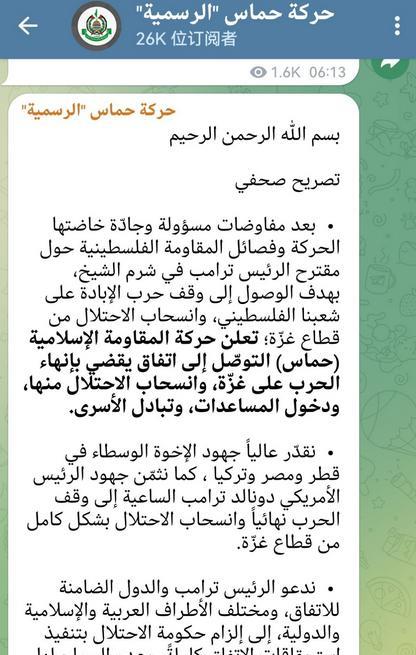 加沙迎来停火,哈马斯宣布胜利!以色列军队全面完全撤离加沙地区!哈马斯释放20名人质,以色列释放近2000名巴勒斯坦囚犯。 哈马斯宣布,向加沙地区,耶路撒冷,约旦河西岸的伟大人民致敬!这些伟大的牺牲,打败了以色列占领和奴役加沙地区的计划! 同时,哈马斯方面也表示,哈马斯高度赞扬和重视,特朗普,埃及,卡塔尔,土耳其等调解方做出的努力! 特朗普发出表态,以色列军队将全部撤离加沙地区,所有以色列人质都将被释放!作为迈向持久和平的第一步。 哈马斯确实获得了胜利,哈马斯把20多名以色列人质的作用发挥到了最大!可以让以色列不仅答应1:100的交换比,还愿意吐出所有占领的加沙地区领土。 这不仅仅是战场上的胜利,哈马斯的谈判能力,造势能力,以及宣传能力,拉拢白左当做盟友的战术,确实非常高明!以那么小的筹码,拿到这么多的收益!
