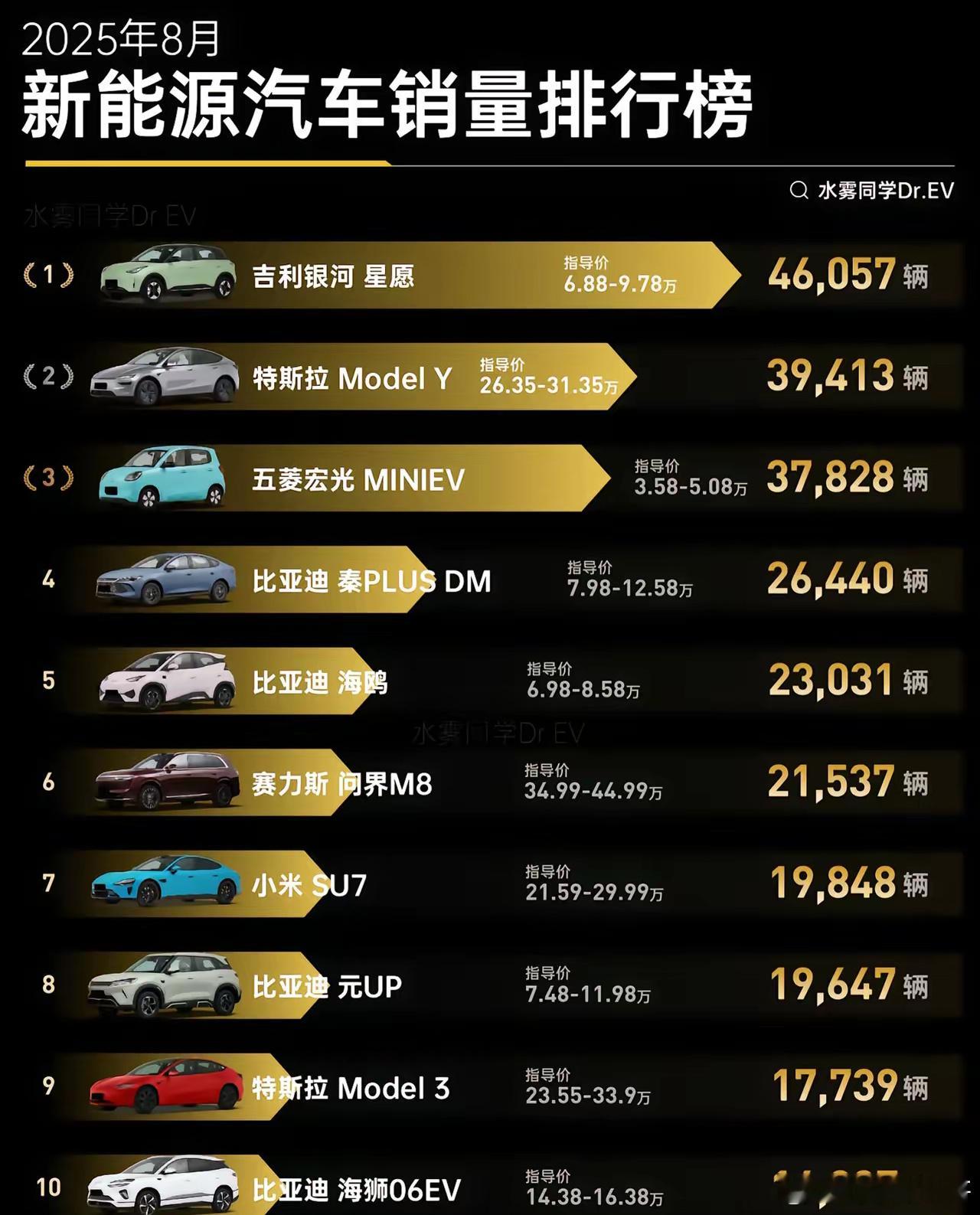 卖的最好的车型最个对比,你就知道哪个品牌最赚钱了?第一名吉利星愿,星愿的厉害之处在于性价比还有讨巧的外观设计,还有吉利最新的flyme auto车机系统,单月卖了46000辆,第二名是特斯拉modely ,每次问身边同事这车好看都说不好看,但是最终选择的时候还都会选择特斯拉,毕竟人家三电第一呢,也不知道小米什么时候能赶超,20多万的售价单月卖了将近4万辆。