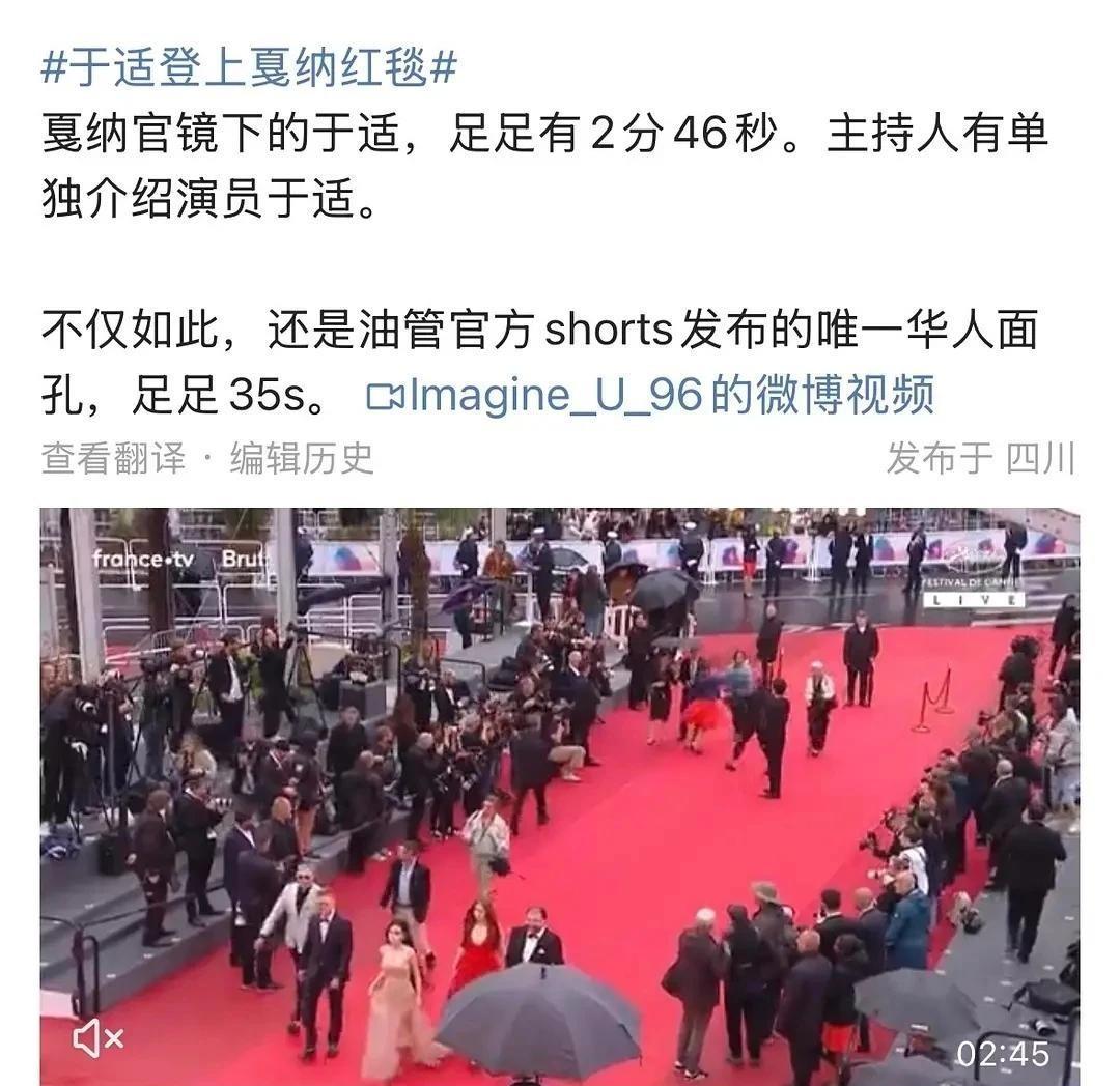 于适成为戛纳宠儿,官媒镜头跟拍2分46秒,主持人单独介绍。 第一次知道,男孩子笑