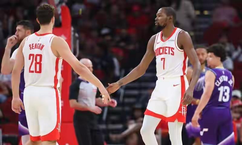 火箭新赛季三大外援亮相,杜兰特火箭首秀10中7得到20分,卡佩拉首秀8分7篮板2助攻,霍乐迪11分,没有特别拉风的#NBA火箭队# ,火箭140比127胜马尔卡宁缺席的爵士队,湖人旧将芬兰史密斯没有亮相,新赛季外加申京,谢泼德,汤普森,格林,史密斯,还有养伤的范佛里特,新赛季火箭未来可期#火箭阵容#