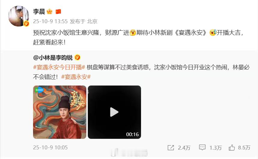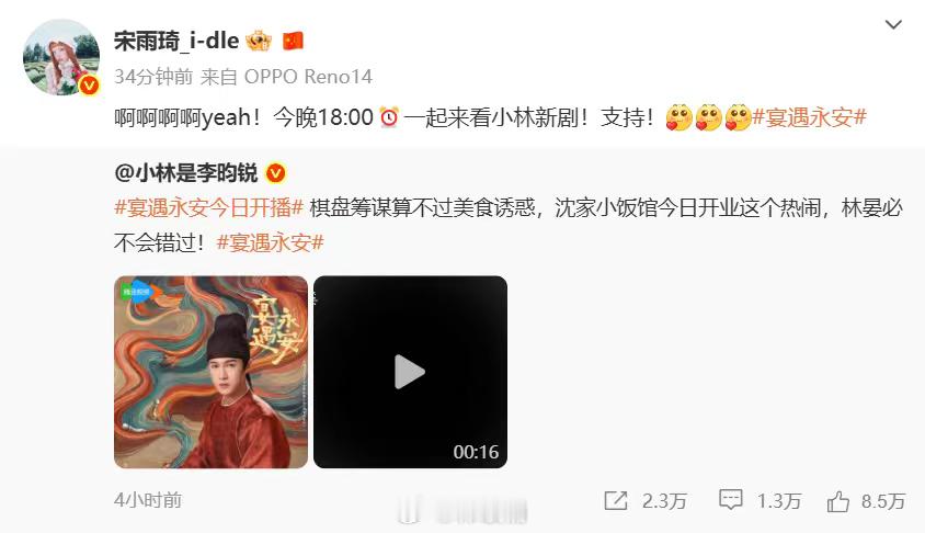 李昀锐新剧人脉也太强了!!《宴遇永安》今日开播,满屏的宣传,这个李昀锐人缘这块