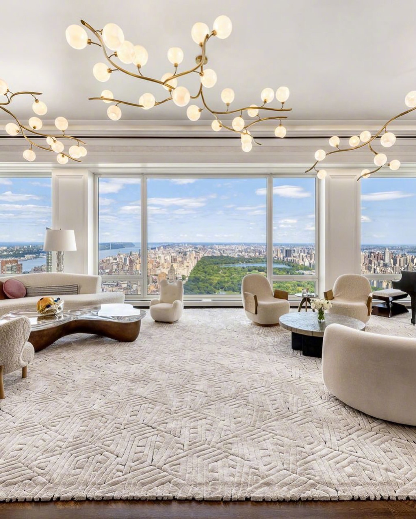 在纽约的亿万富翁街区(Billionaires’ Row),220 Central Park Tower South 的这套整层住宅正在以 8750 万美元挂牌出售。
