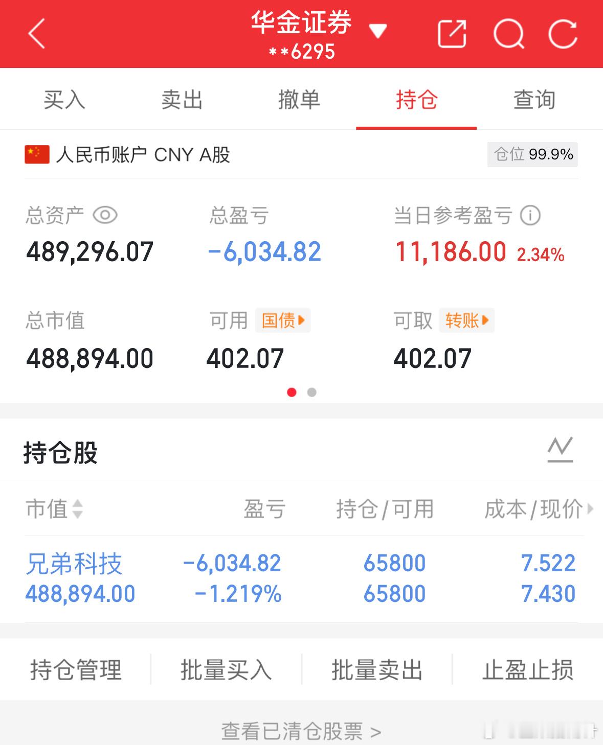 节后开门红,兄弟科技也涨了2个多点,目前持仓浮亏-1.219%,不出意外的话明天