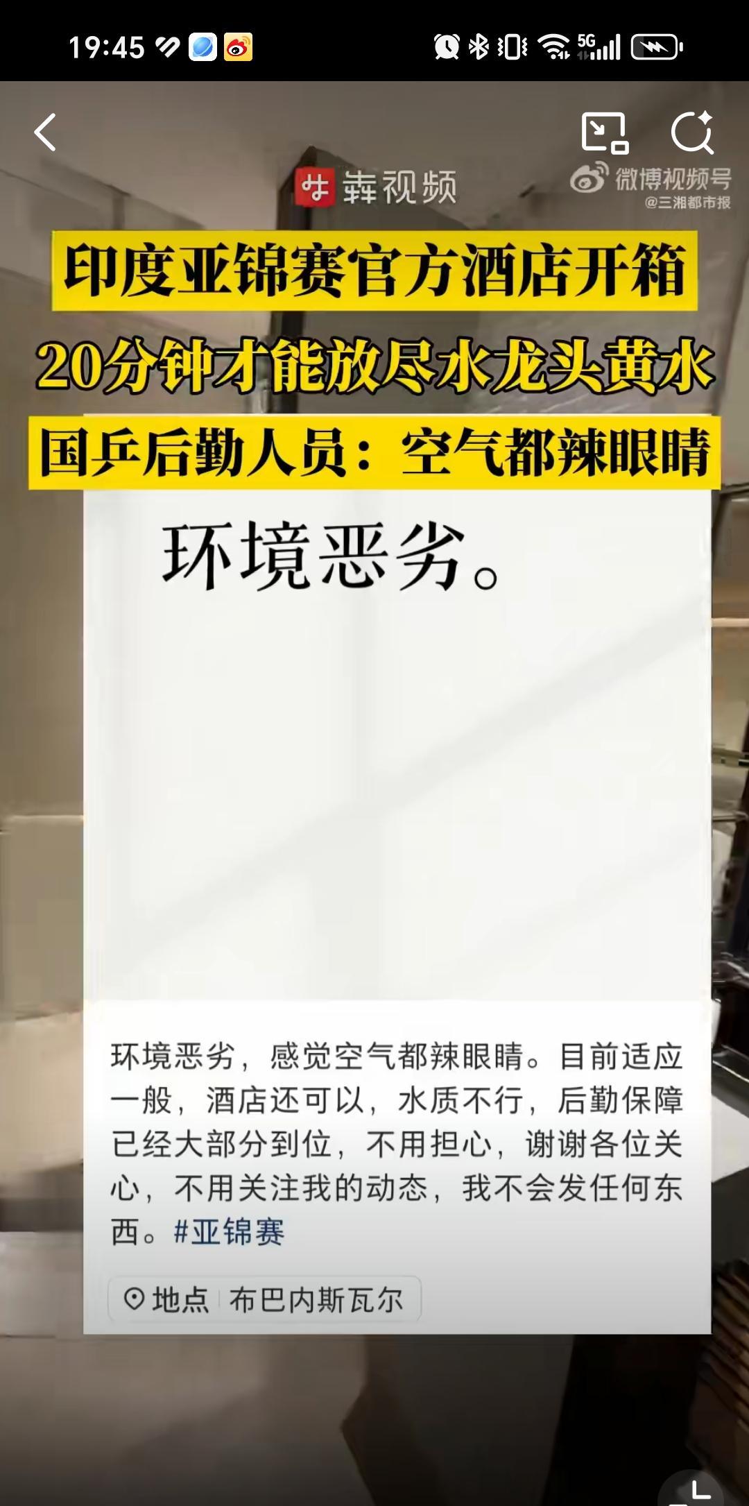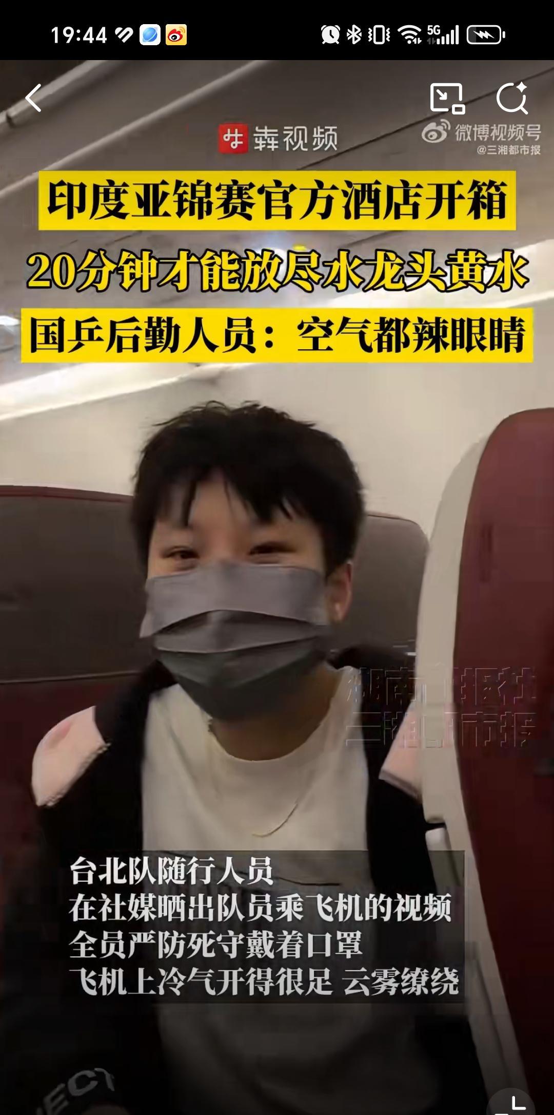 10月9日国乒到达印度环境恶劣,连空气都辣眼睛,真的下飞机都戴上口罩了。有后勤人员说这20多分钟放不完的黄水。真的孙颖莎特别爱干净,我真怕她白色衣服都没法洗,王曼昱属于体质不太好的一定要注意饮食。王楚钦也很爱干净,这皱巴巴的床,加上黄色的水没办法想象,印度是怎么拿到亚锦赛申办权的,真的替运动员担心身体状态。