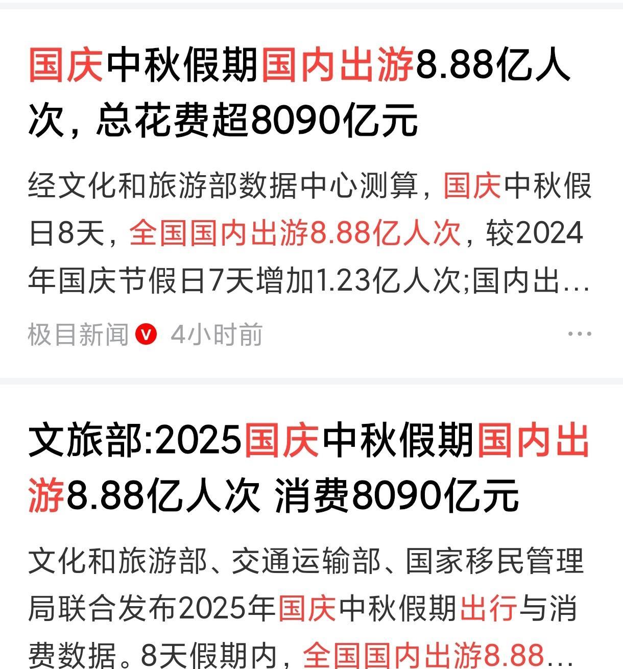2025年国庆中秋出游人数是8.88亿人次,你信吗?看看我的分析: 国庆中秋正值