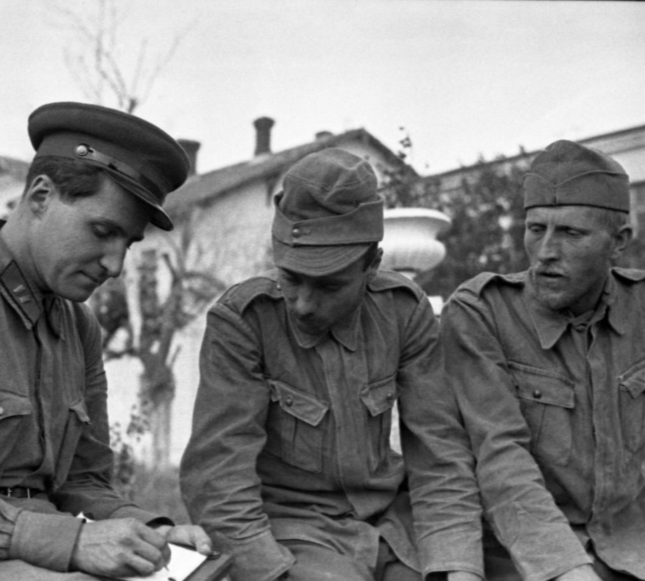 [呲牙] “感谢不杀之恩”——1941年8月,敖德萨。《红星报》战地记者康斯坦丁·米哈伊洛维奇·西蒙诺夫在敖德萨郊外与两名罗马尼亚战俘交谈。 以下摘自西蒙诺夫的著作《战争的不同日子·1941年卷》:“当其他战俘被带回房间后,特地留下两人与我交谈。他们讲述了如下经历:这两个都是强征来的罗马尼亚农民,在军队中担任野战火炮弹药手。在炮长和其他士兵全部逃跑后,他俩始终守在火炮旁等待我军到来。当他们举手投降后,竟请求用自己的火炮轰击1.5公里外他们所熟知的德军炮兵阵地。获得许可后,他们将全部弹药倾泻到了德军阵地上。 我与他们进行了深入交谈。这两人都已年近四十,有着淳朴的农民面庞,眼神里透露出对战争的鲜明厌恶。在我看来,他们开火轰击德军阵地的行为,与其说是出于对德国人的仇恨,不如说是想用这种方式感谢我们的战士——感谢不杀之恩,感谢红军让他们永远摆脱了这场战争。” 康斯坦丁·西蒙诺夫是苏联著名作家、诗人、战地记者,以战争题材作品闻名。时任《红星报》前线特派记者,跟随部队经历了整个卫国战争。其战争日记《战争的不同日子》被誉为“最真实的战争文献之一”。