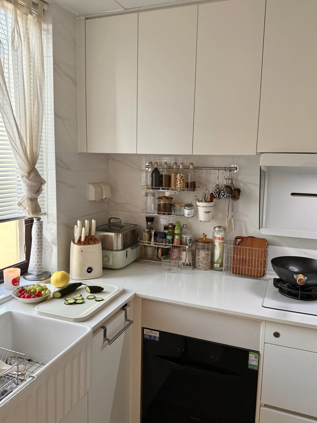 硬装很简单,整体大白墙,没做复杂的吊顶。
