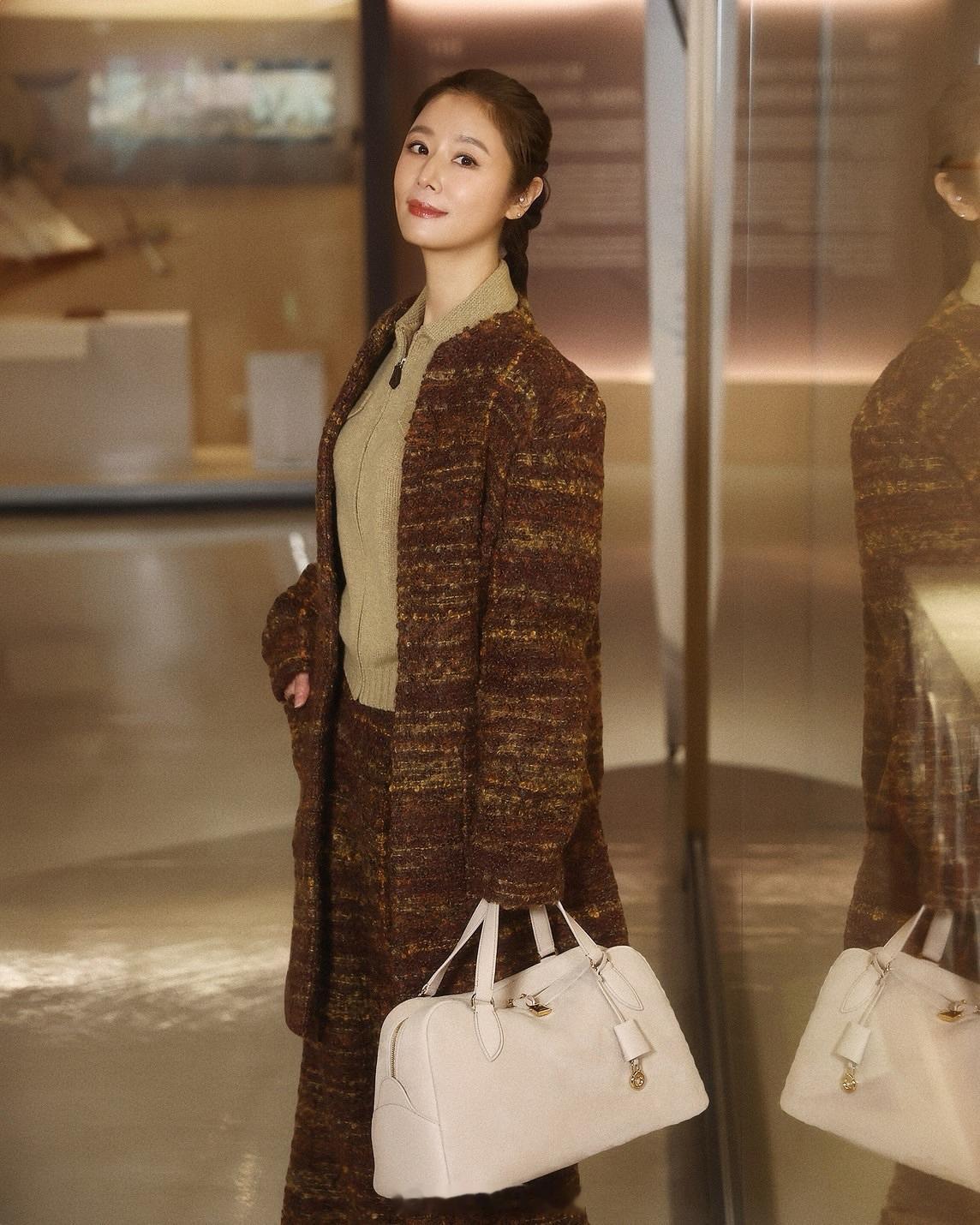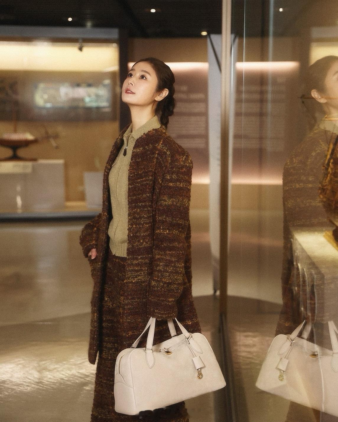 林心如[超话] 粗花呢套装自带时光滤镜,暖棕调在光影里揉出温柔感,米白手袋像一抹轻盈的注脚,把展览厅的沉静氛围,都穿成了优雅的延伸~每一处纹理都在说:经典,从不过时✨