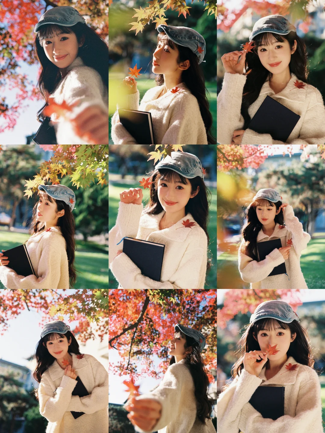 🧥穿搭:建议棕黄 蓝 白 红色系和秋天的黄叶拍出来更出片