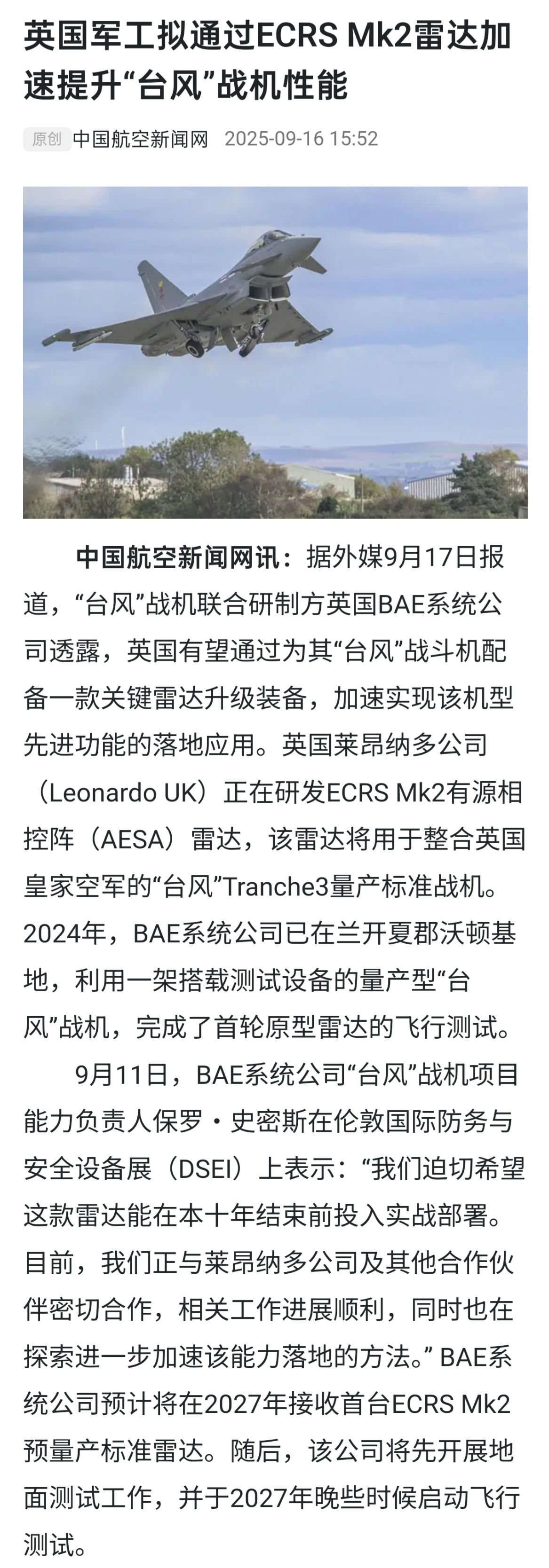 台风的ECRS Mk.1,ECRS Mk.2 AESA雷达基本同步研发,都在改造的试验机上做试验。预计都在2026~2027年交付,只不过一个是砷化镓器件、一个是氮化镓器件 [允悲]