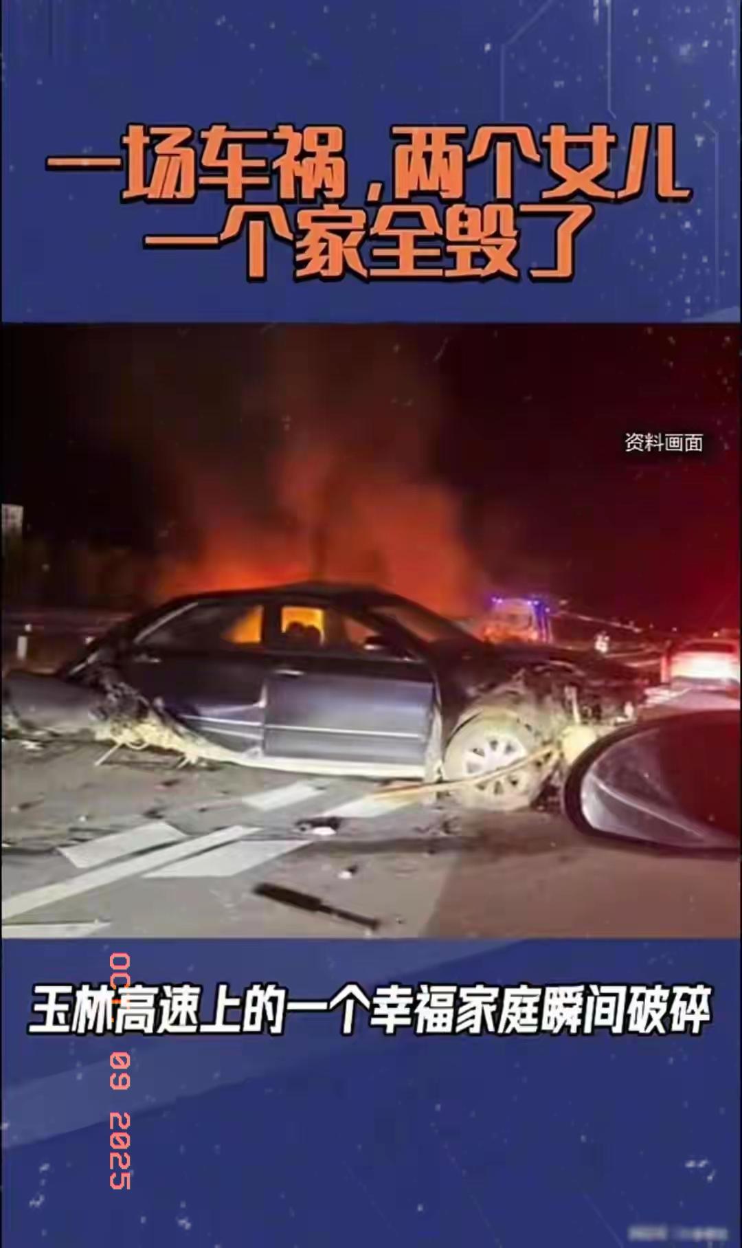 国庆车祸里被大火吞掉的两个孩子,真的是被树枝害死的吗? 谁能想到,国庆出游的一家四口,会在高速上遭遇这样的灭顶之灾?父亲眼睁睁看着两个女儿被大火吞噬,母亲重伤昏迷,而这一切的开端,居然是有人用三根树枝代替了三角警示牌。但别光骂那个司机侥幸,这悲剧里藏着的,是我们每个人都可能犯的错。 总有人觉得高速应急规则是“小题大做”,双闪忘了开、三角牌嫌麻烦,甚至像这位司机一样,拿树枝凑数,觉得“反正就停一会儿,别人能看见”。可高速上每秒都是生死竞速,90公里的时速下,150米的安全距离都未必够,几根破树枝能挡得住什么?说到底,不是树枝太敷衍,是我们对“规则能救命”这件事,从来没真的放在心上。 更让人难受的是,这样的悲剧本可以避免。如果司机记得开双闪、放三角牌,如果后面的车能多留点心,哪怕救援时车门能快点打开……可没有如果。现在说要标配一键破窗、导航弹窗提醒,这些当然有用,但比设备更重要的,是我们自己把“车靠边、人撤离、即报警”刻进脑子里。 你车里的三角警示牌开封过吗?上高速前会特意检查应急工具吗?别等出事了才后悔,有些规则,真的是用命换回来的。