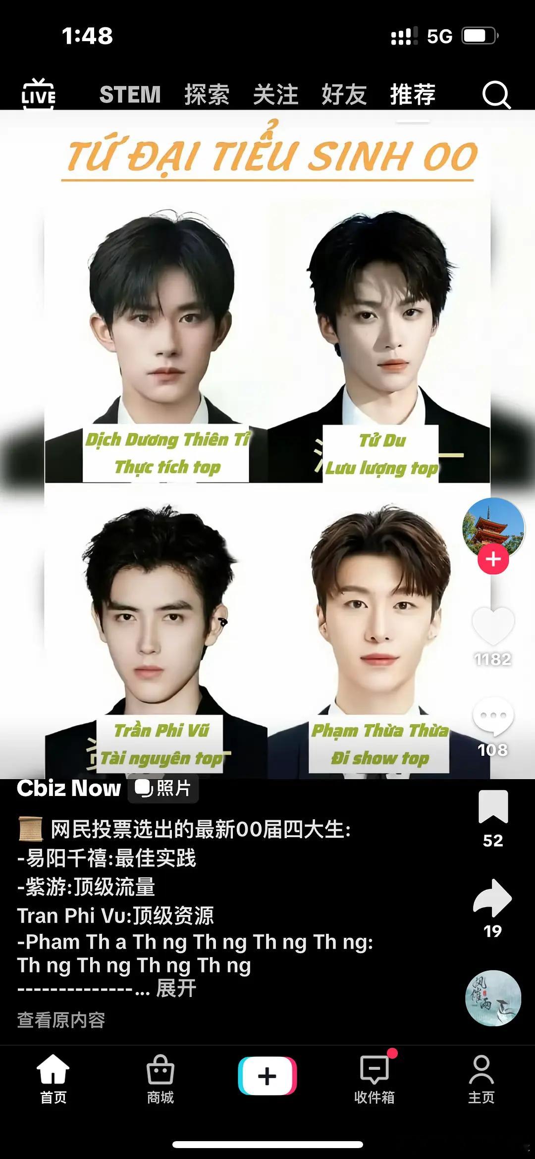 以后大家发帖要注意,现在外媒啥都搬,连昨天那个很野鸡的00后四大男明星都给搬了[笑cry][笑cry][笑cry]我都怀疑老外能不能分得清易烊千玺和梓渝[允悲][允悲][允悲]