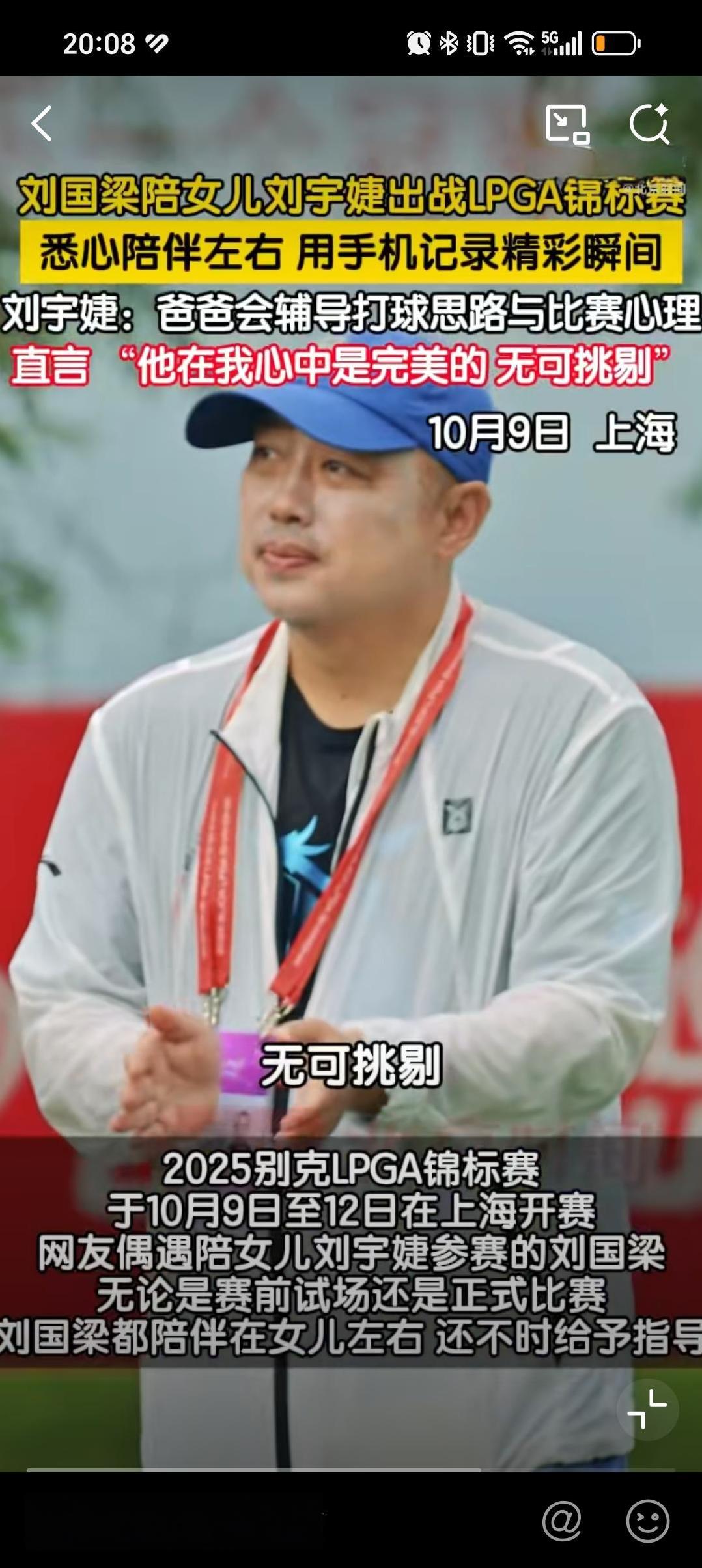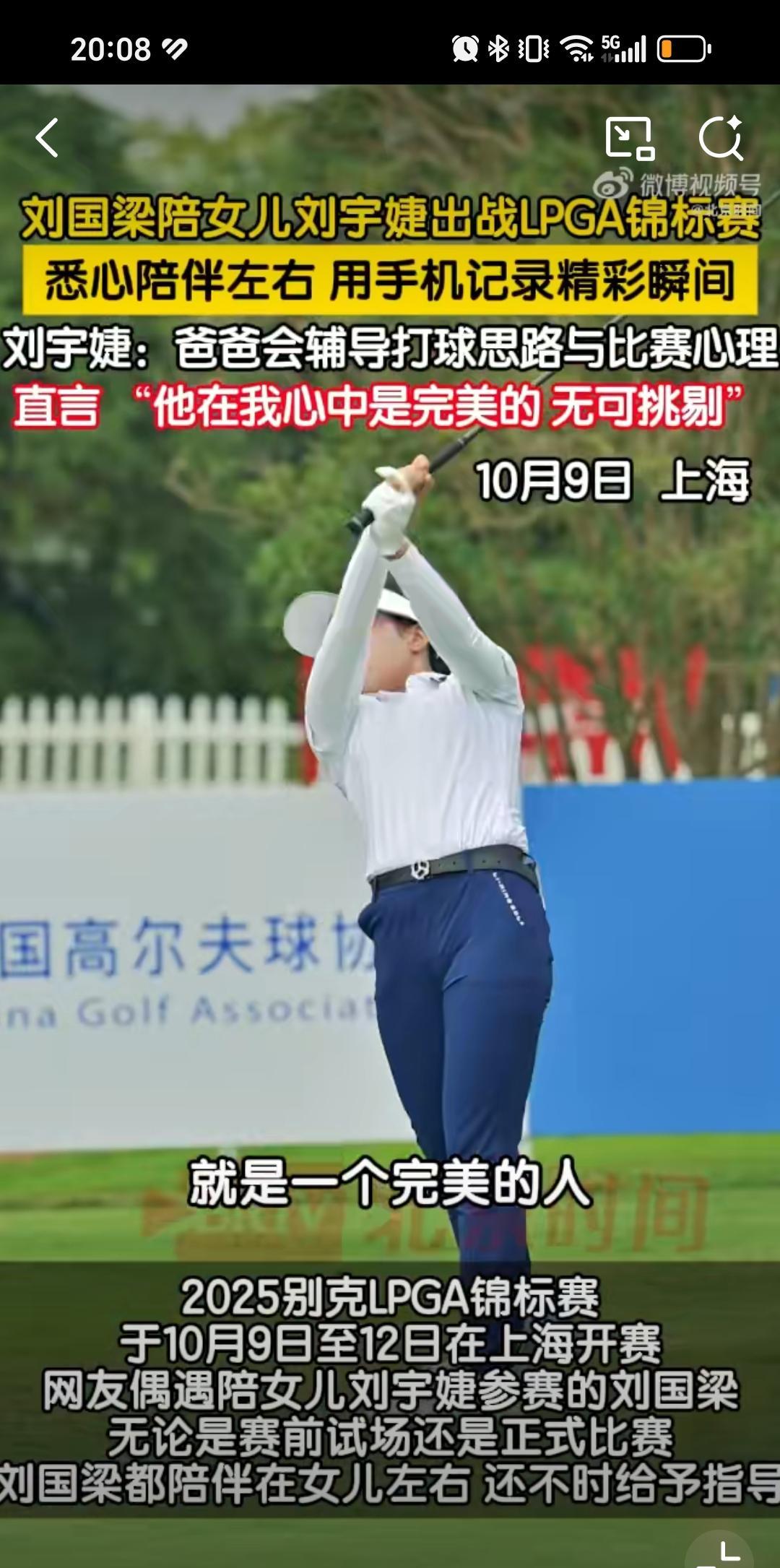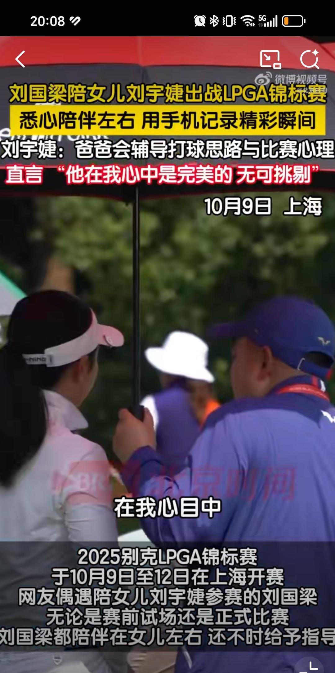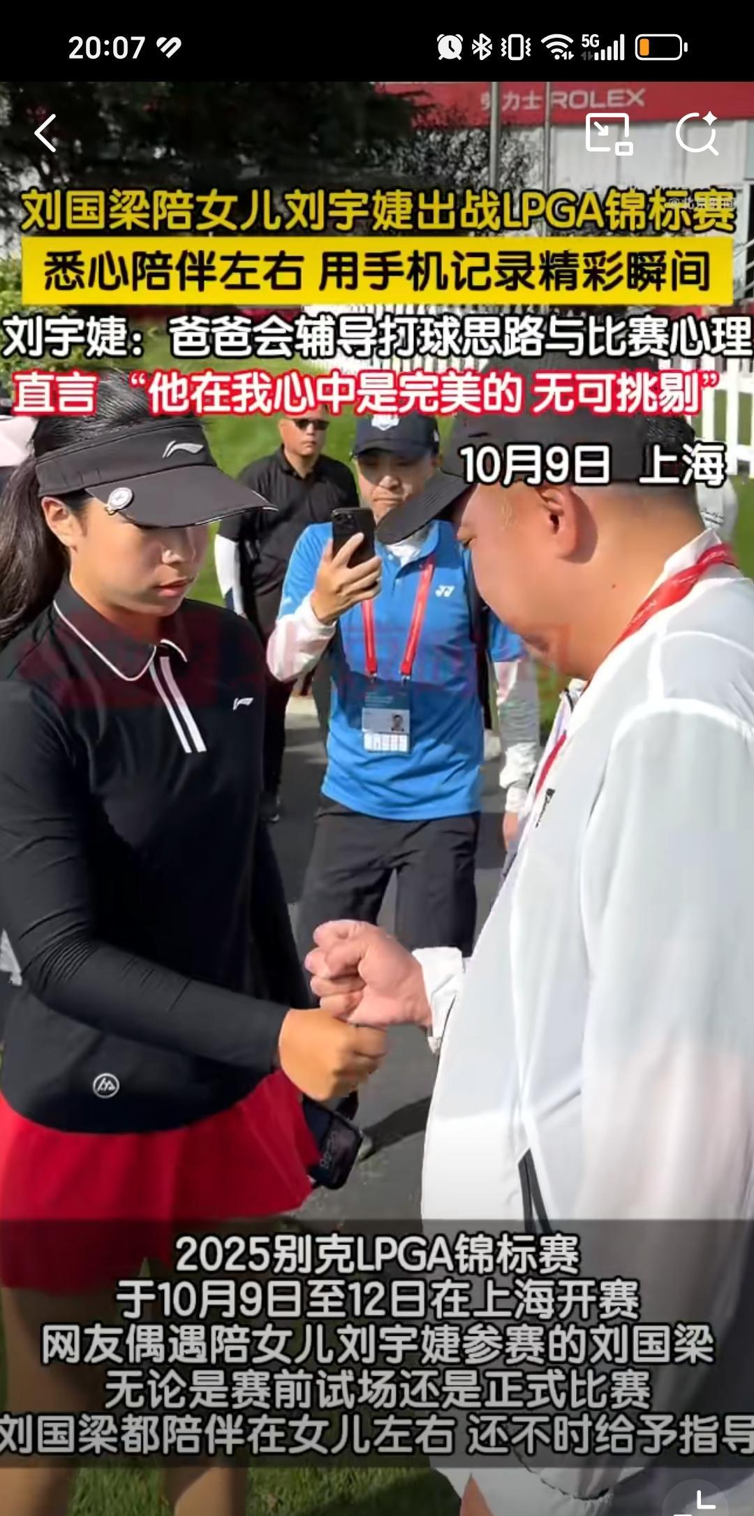 10月9日刘国梁陪伴女儿高尔夫球比赛,打伞,录视频,暖心安慰更像女儿教练,刘国梁这是卸任之后回归家庭,更多陪伴女儿弥补遗憾,然后把女儿培养成高尔夫冠军的节奏,刘国梁女儿没选乒乓球是我意料之外的事情,因为乒乓球才是她父亲的主业,如果练习乒乓球可能事业更顺。