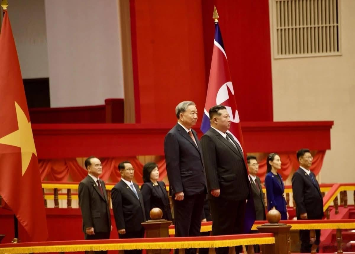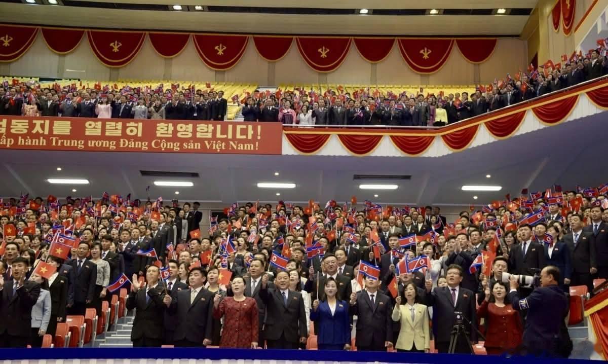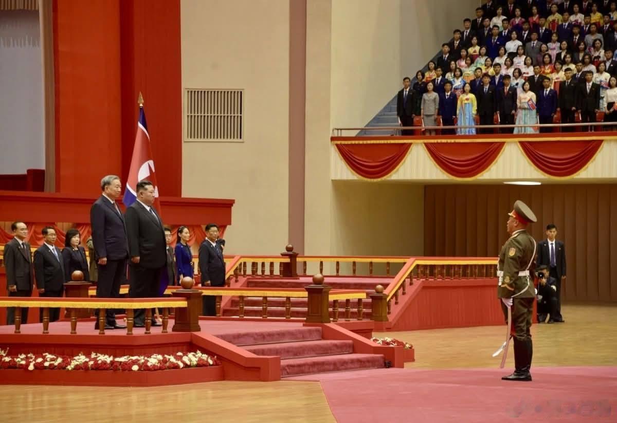 10月9日上午,越共总书记苏林率领越南高级代表团抵达朝鲜首都平壤,开始对朝鲜进行国事访问,并出席朝鲜劳动党建党80周年庆典。看样子随行的有越南国家主席梁强、国防部长潘文江(图4),越南党政军头全去了,规格不低。