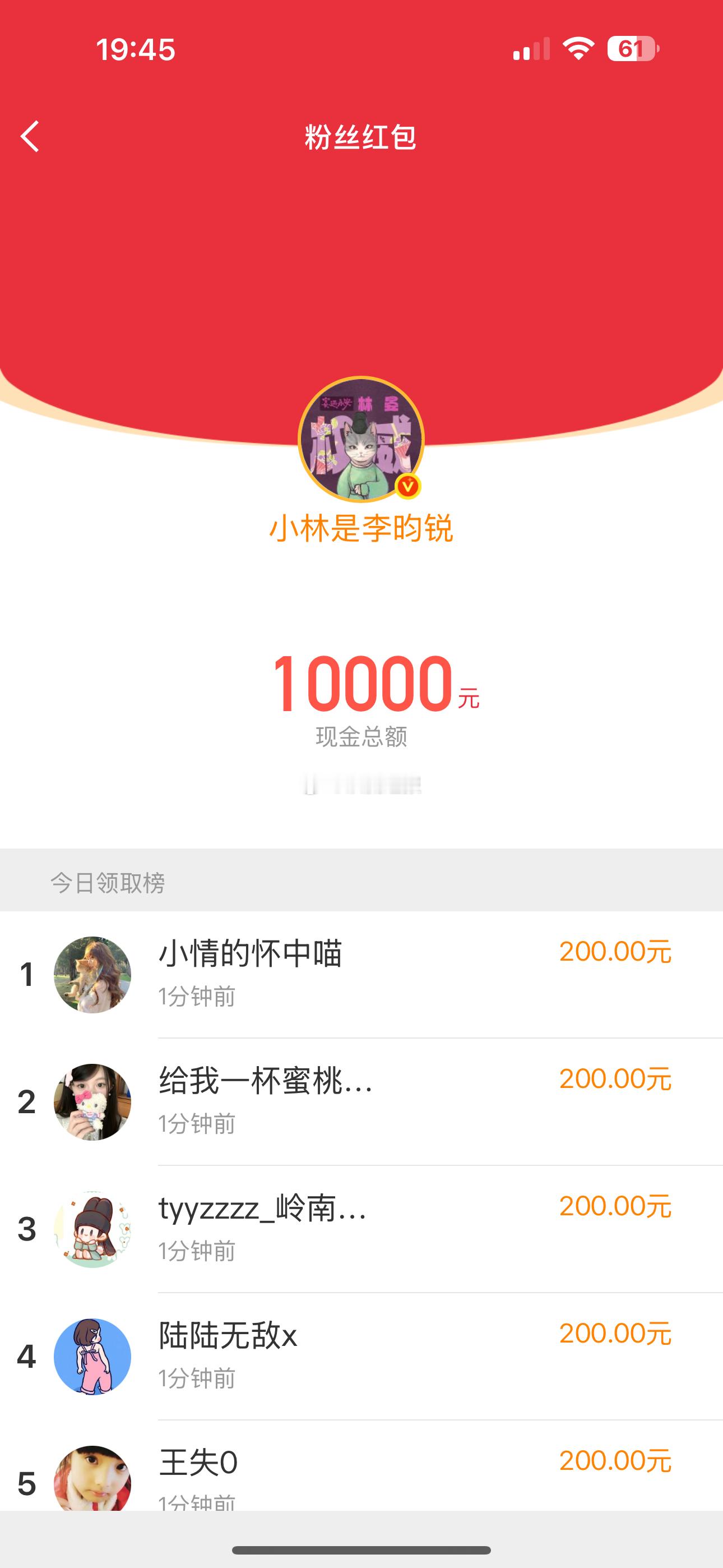 李昀锐微博发10000红包,狠狠羡慕抢到的人[苦涩]