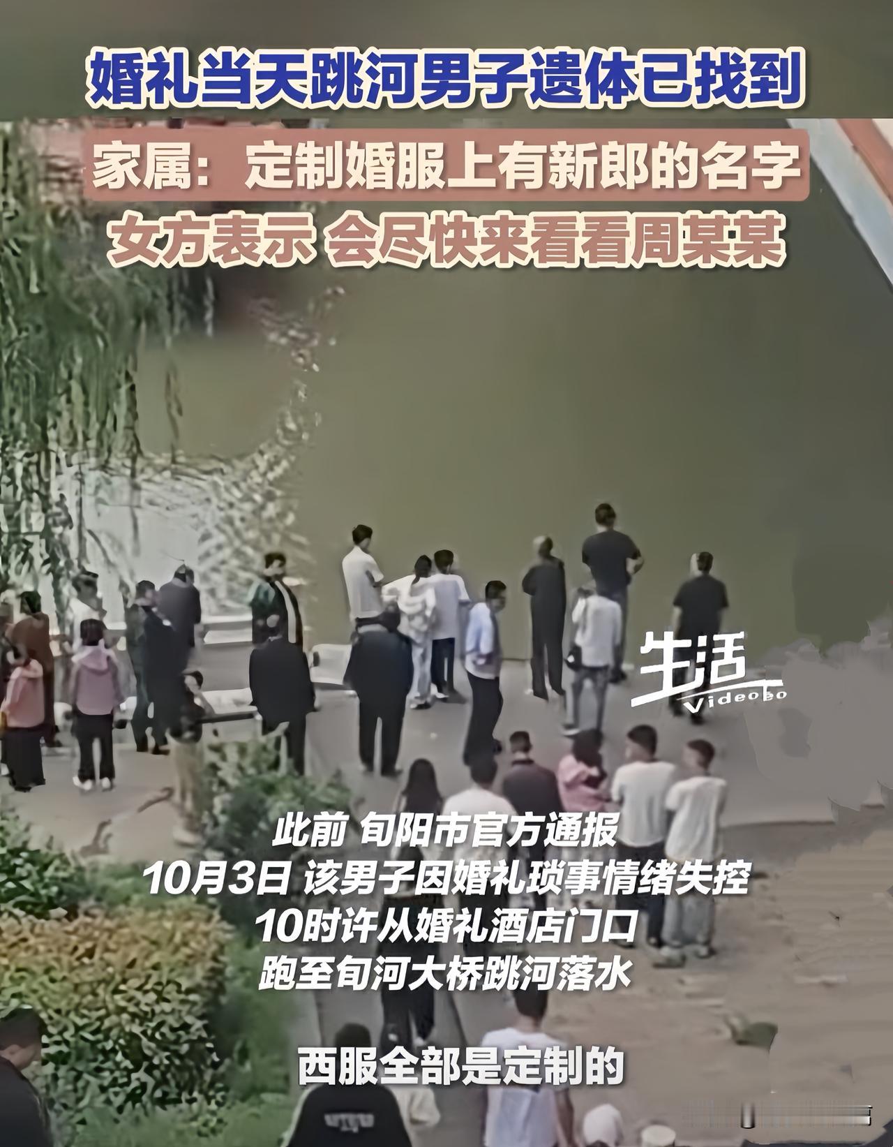 陕西婚礼新郎跳河身亡, 遗体已找到。 现场悲伤女方表示:我会去看望你的!
