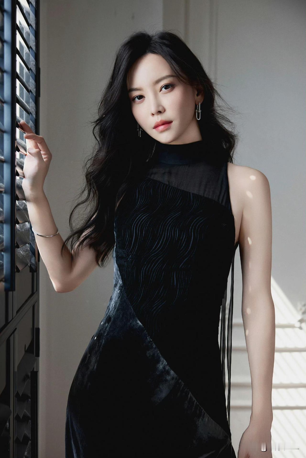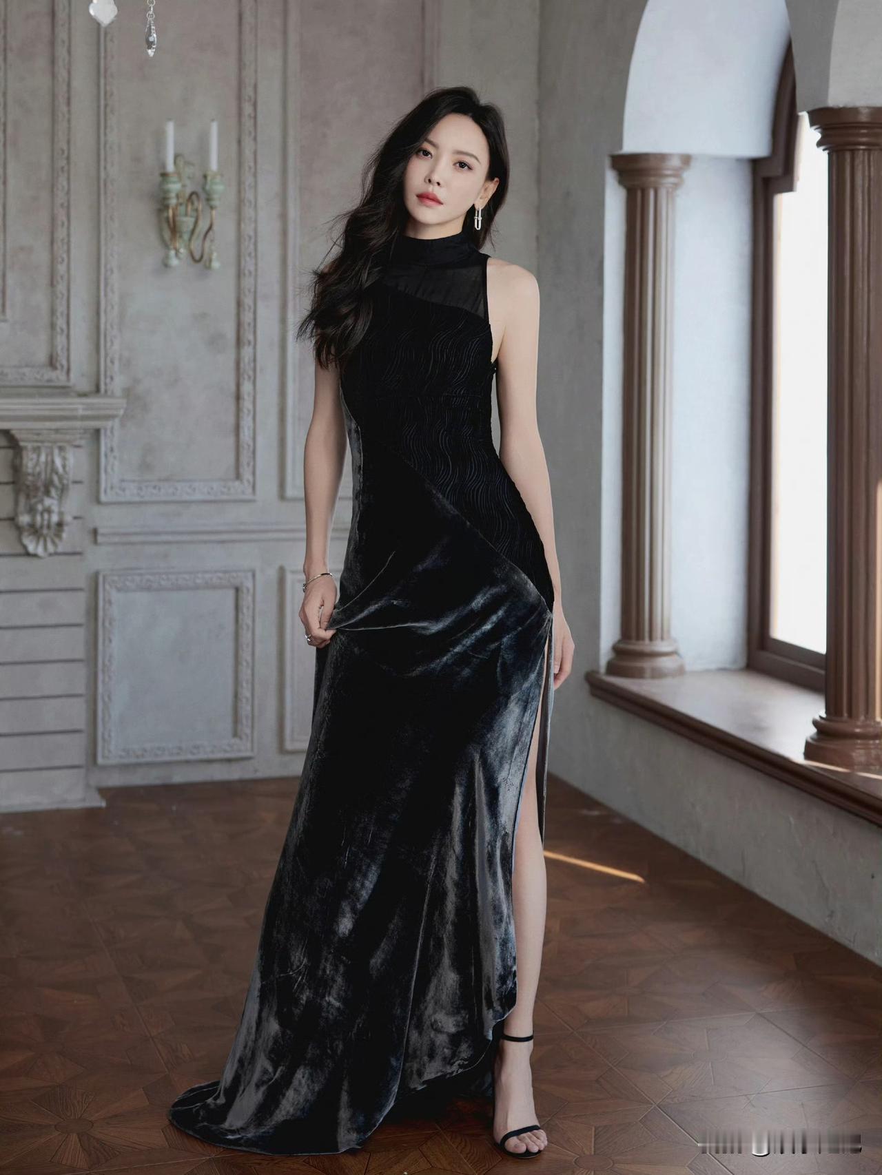 于文文黑色丝绒质感长裙,光影交错,一帧一梦皆温柔。于文文身着黑色丝绒质感长裙,光影在其间悠然游走,每一帧都编织成梦,温柔了时光,文艺清新中透露出高贵典雅,风姿绰约,自成风景。