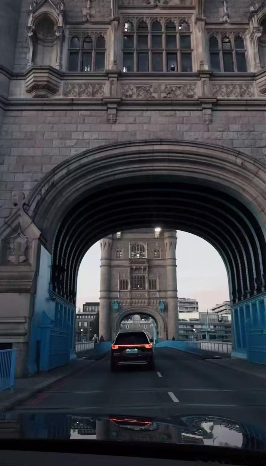 M9车队驶过伦敦塔桥,隐隐有一种科技征服欧洲古城的感觉[点赞]