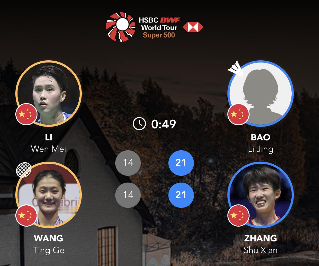 鲍骊婧/张殊贤🇨🇳 21-14、21-14 🇨🇳李汶妹/王汀戈