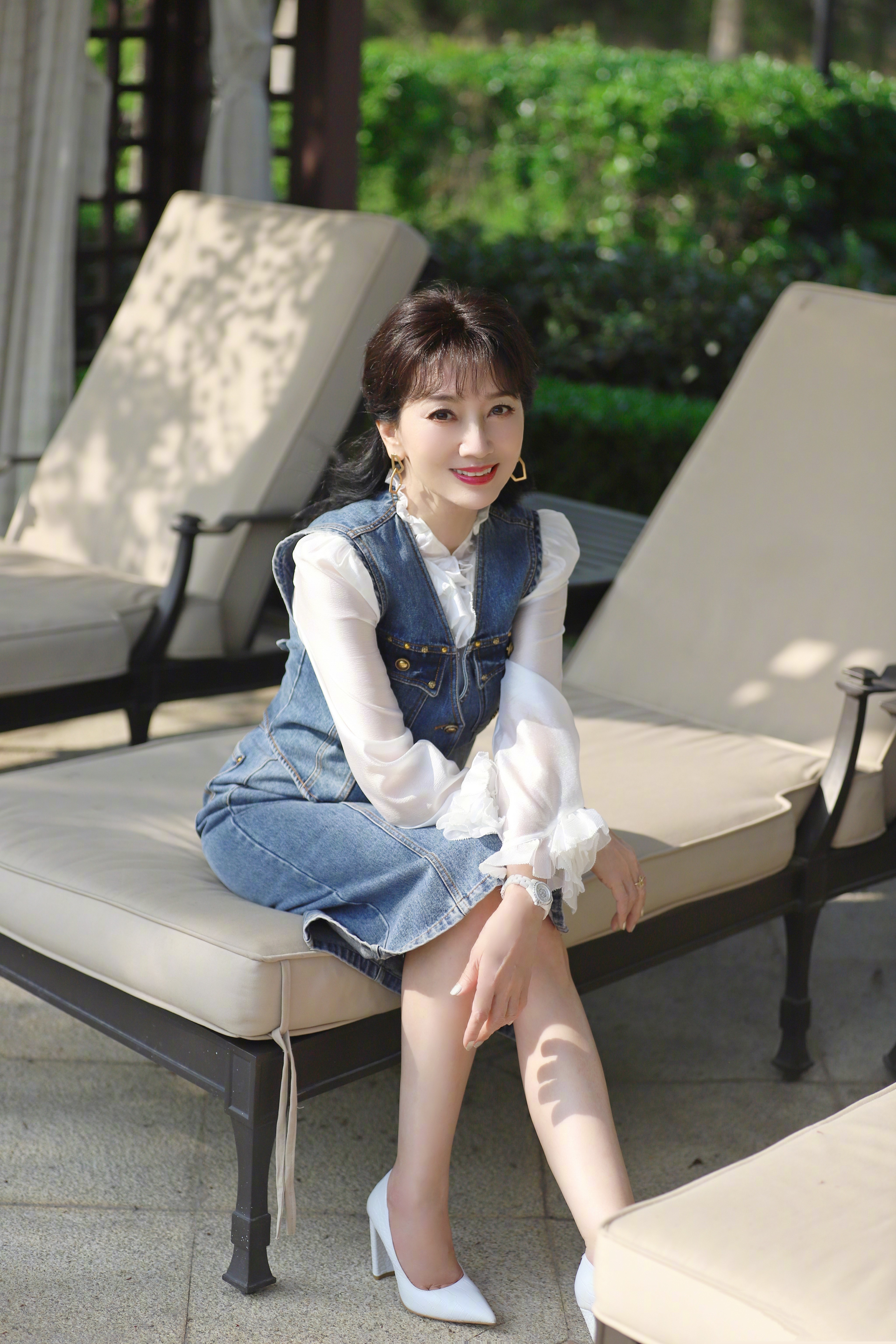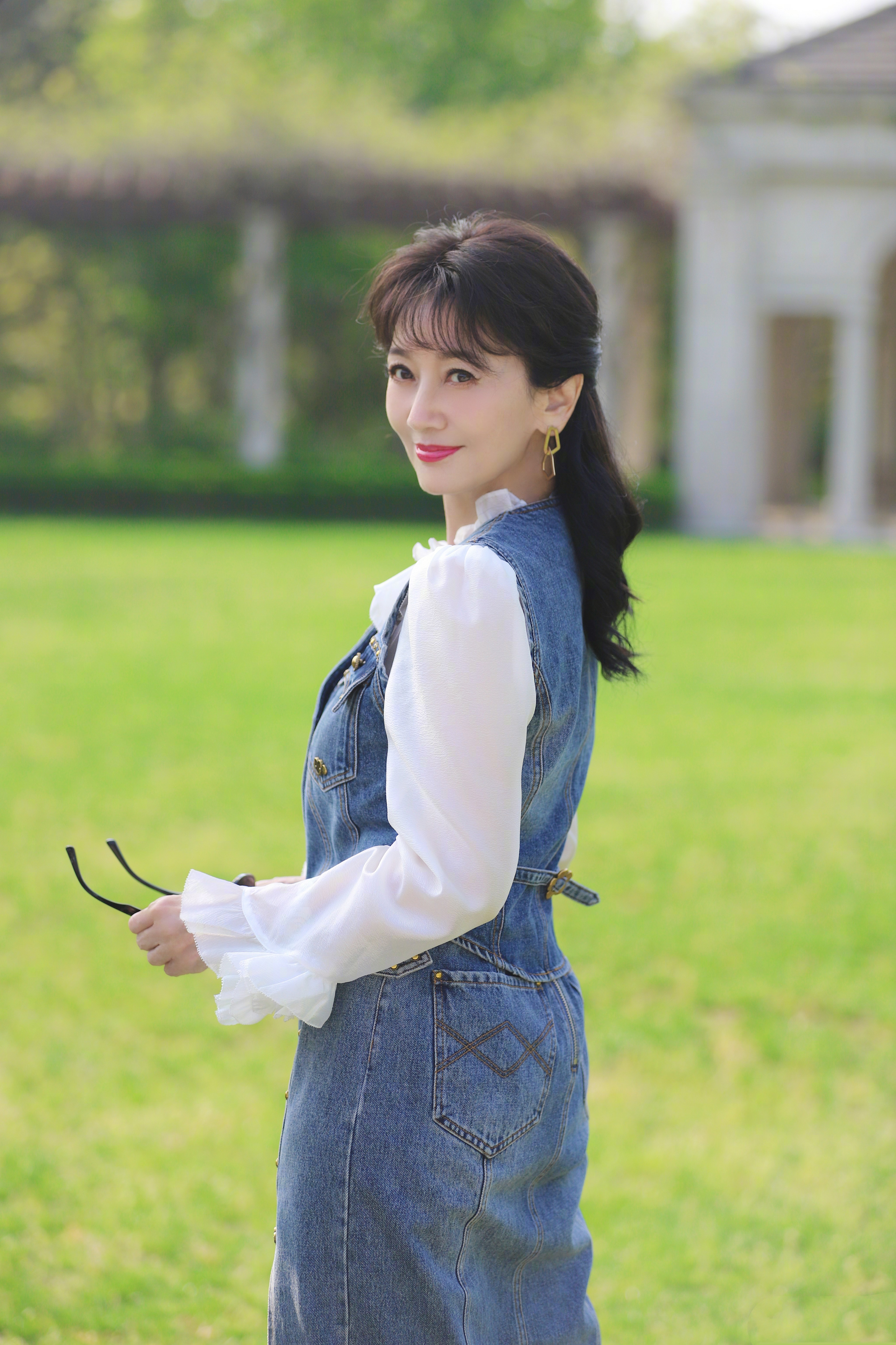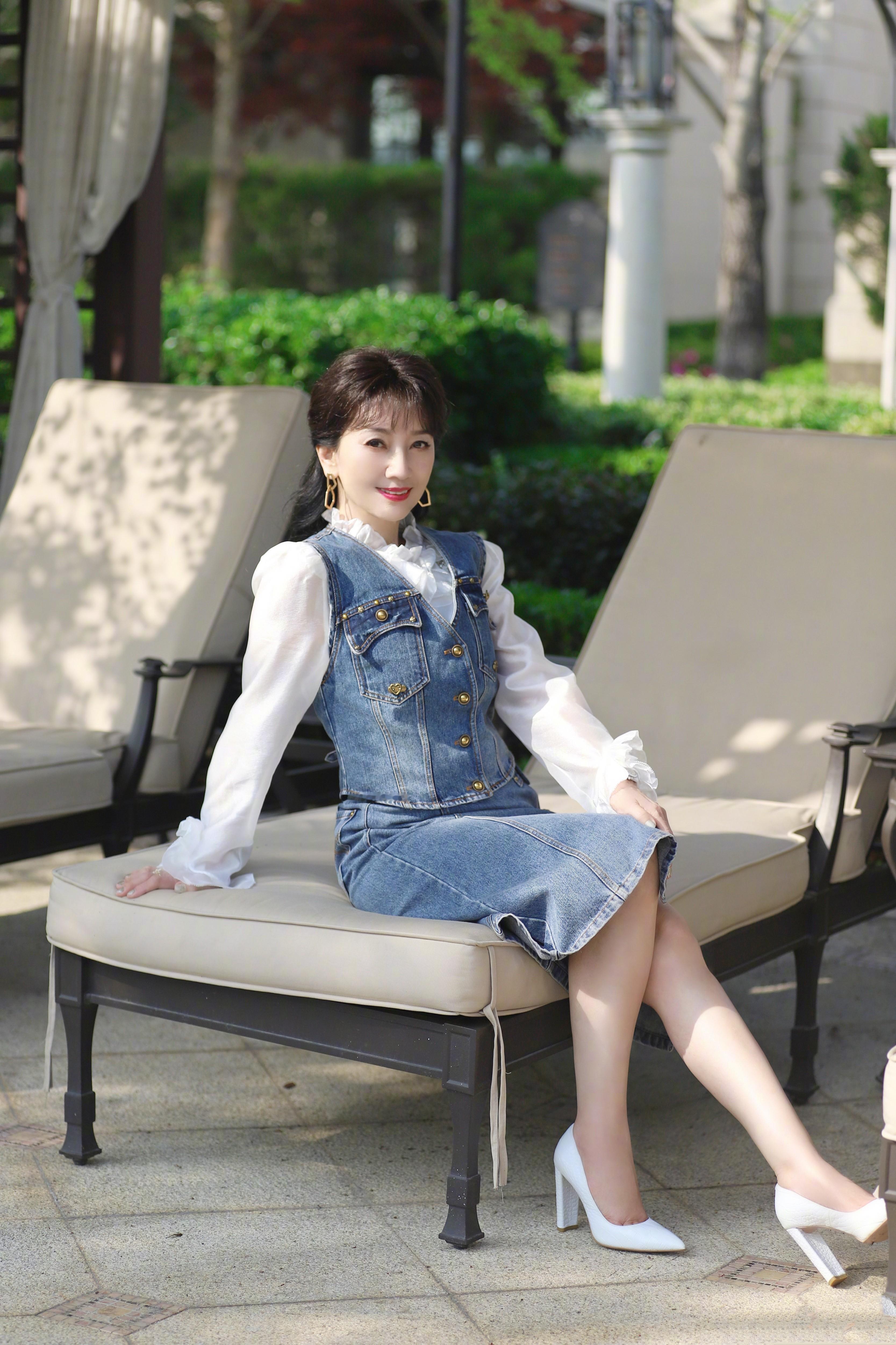 赵雅芝,蓝与白的色调穿搭,真的好优雅