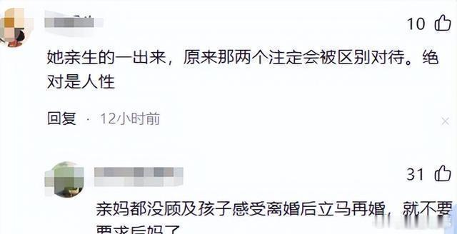 可有些网友马上联想到大S的孩子,开始担心汪小菲会因为新生儿而忽略原来的孩子。其实,这种家庭关系在很多普通人家也很常见,父母偏心小的孩子,老大的心理很难受。