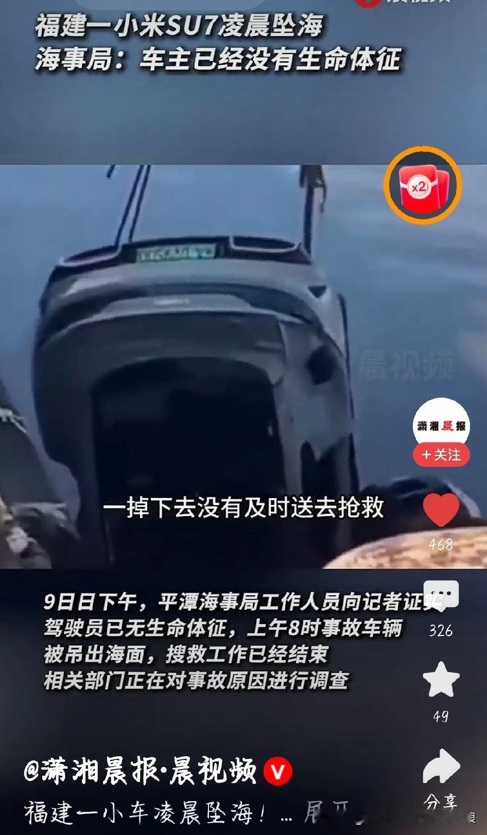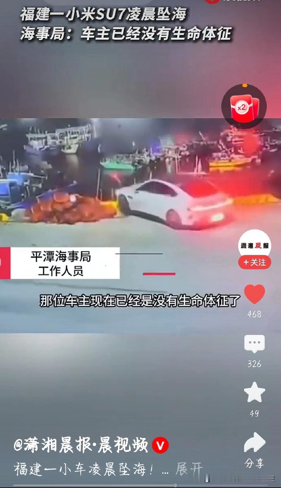 小米SU7凌晨坠海,车主没了,监控细节太揪心 福建平潭澳前码头的事太让人难受