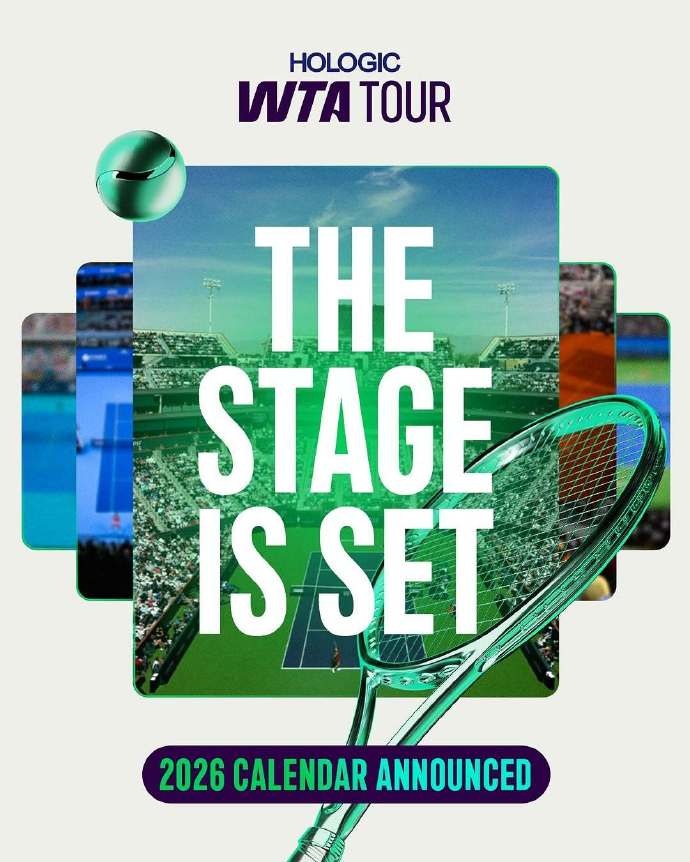 直播吧10月10日讯WTA官方公布2026年赛历,将包括50多站赛事和四大满贯。