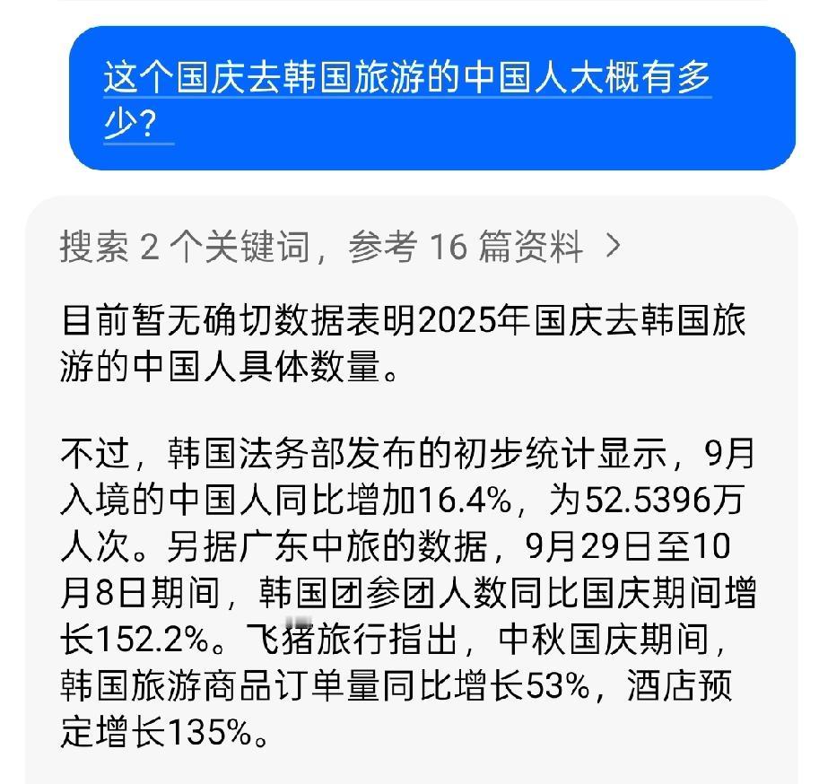 伤害性不大、侮辱性极强!韩国一档节目中,主持人说:来韩国的都是底层的中国人,所以我们韩国人才讨厌中国人。 可真是“吃爷喝爷不谢爷”啊,明明去韩国旅游的人是给他们送钱了,结果人家大嘴一张,说你们来我们这旅游的人都是小穷人、不是有钱人。 不知道那些颠颠去韩国送钱的人看到这番言论,会作何感想呢?我查了一下豆包,国庆假期去韩国旅游的人同比是增长不少的。 不过,我倒是觉得她说得也不无道理,毕竟是物以类聚人以群分吗,什么样的国家、就吸引什么样的人呢!