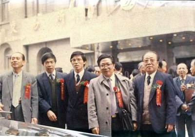 据澎湃新闻此前报道,管金生于1988年创办万国证券(图3右2),其与原君安证券的张国庆、原申银证券的阚治东,并称为中国证券市场的“中国证券教父”。1995年,管金生因“327国债事件”从万国证券辞职,1997年被判处有期徒刑17年。2003年,管金生保外就医。