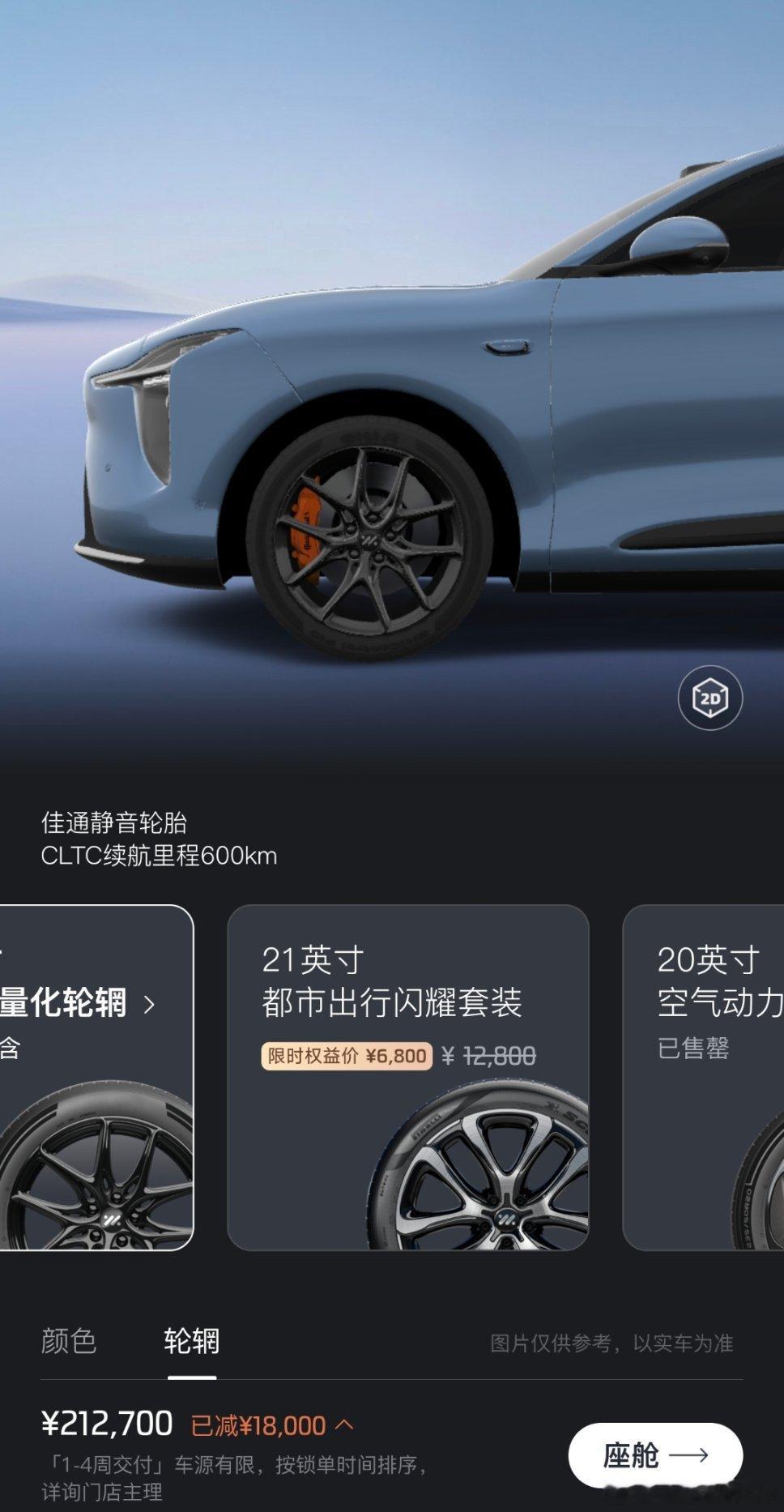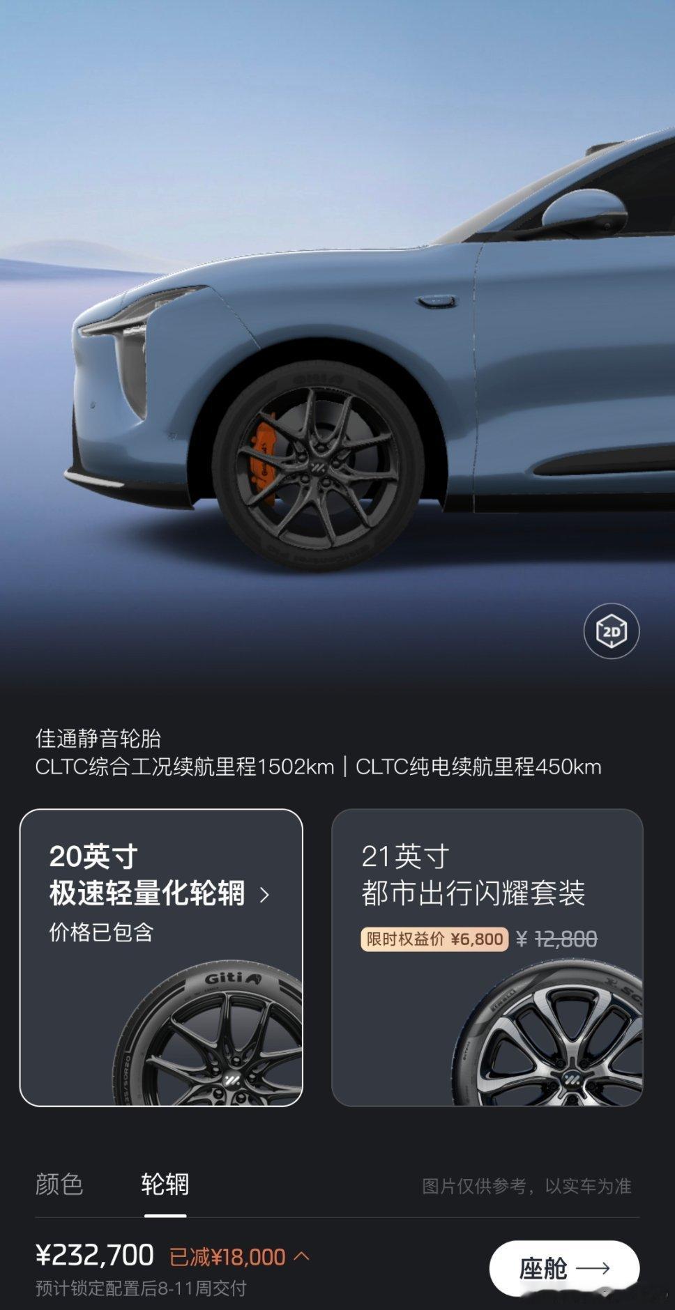 因为增程版智己LS6不提供低风阻轮辋选装,只可以选择20寸极速轻量化轮辋和21寸闪耀套装的轮辋(图2)