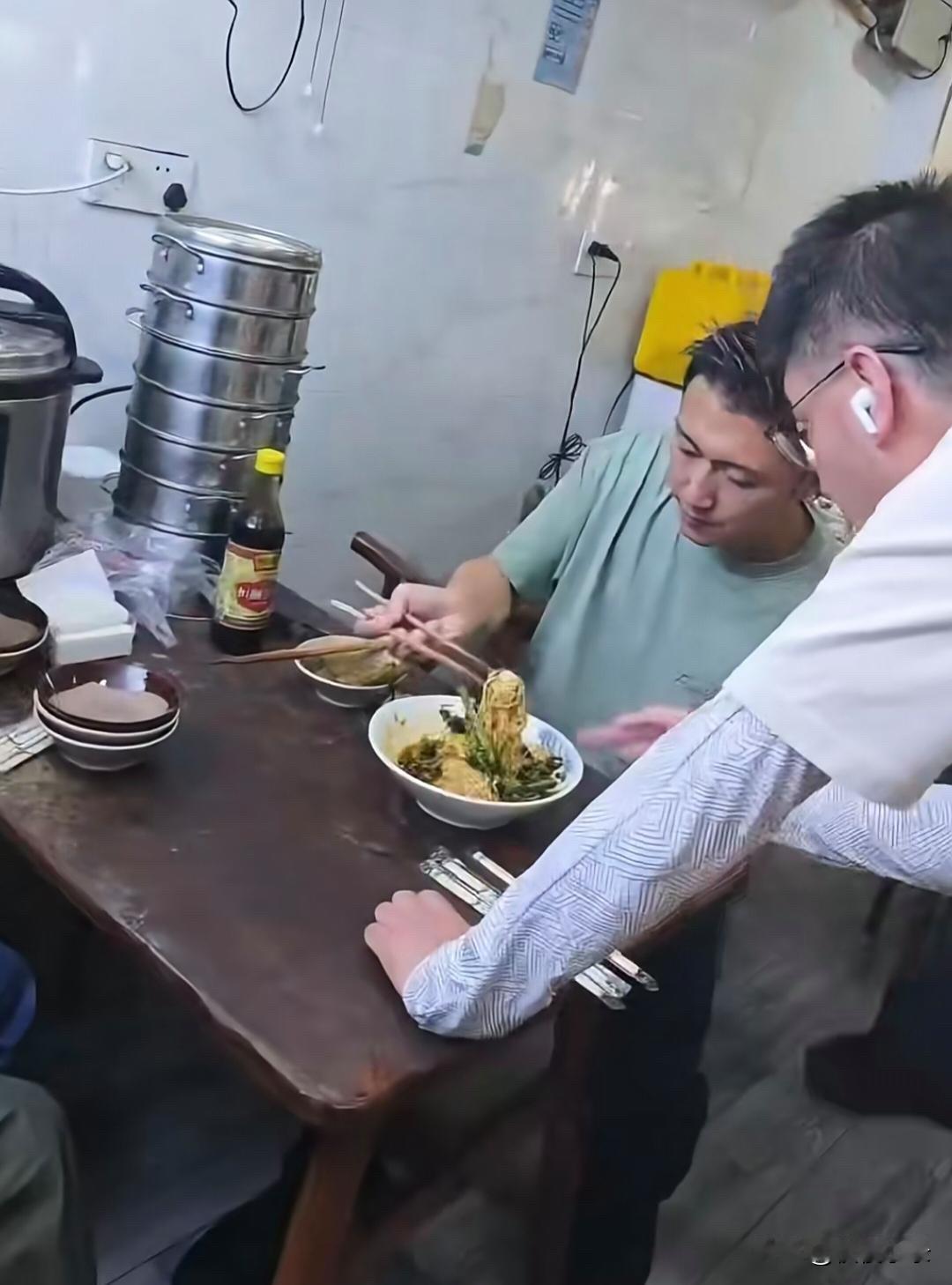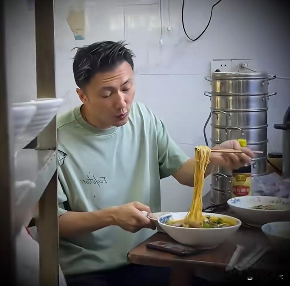 45岁谢霆锋现身重庆一家餐馆吃面,他的穿衣打扮低调,梳着油头,看起来好帅气!满满一大碗面都吃完了,非常接地气![得意][得意]