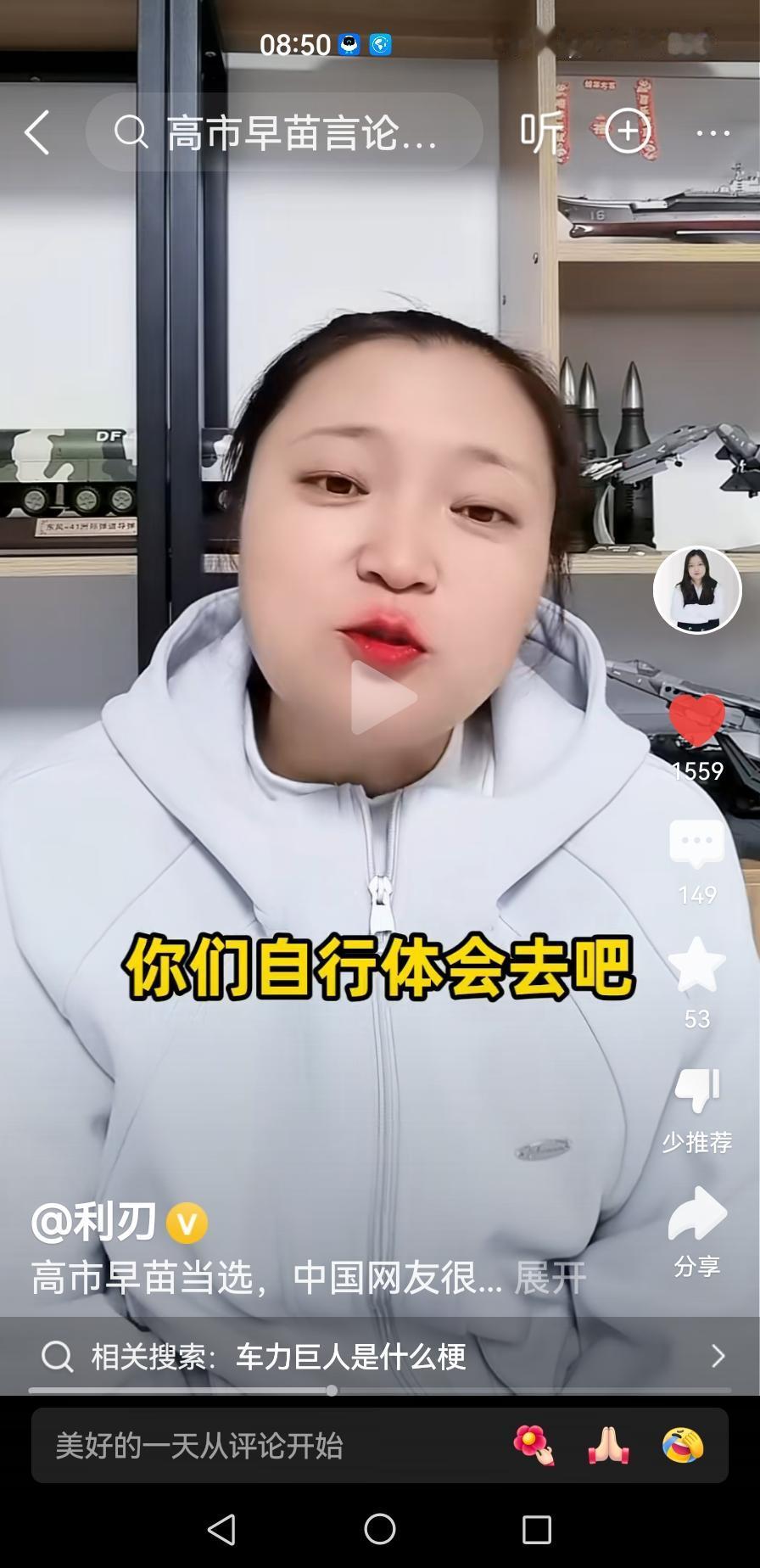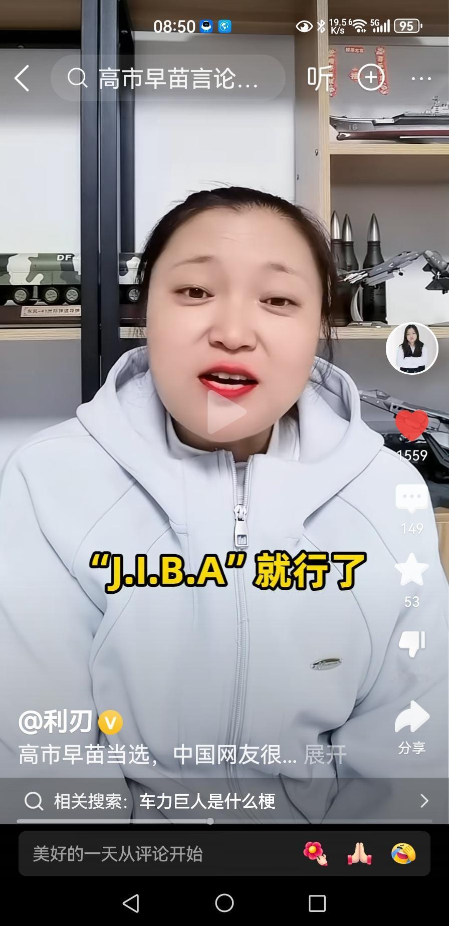 日本要换首相了,高市早苗。利刃兴奋之情溢于言表。说到那个类似特朗普“让美国再次伟大”的简称MAGA,高市提出个口号“日本又回来了”,大有胡汉三的得意劲头。而且还弄了个字母简称J.I.B.A.,美女说了,因害怕平台封号,都不敢直接读出来。据说日本要把国防预算提高到2%,达到10万亿日元,准备与中国干一仗。主播说了,真有那么一天,全国有一亿人报名当兵可怎么办?会不会让体检不合格涮下来,那就打螺丝也挺好的。支持与日本再战它14年,还是不能让敌人投降的那种。