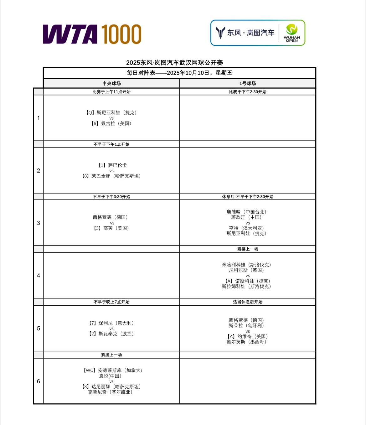 2025上海大师赛网球talking大会 今日赛程安排。