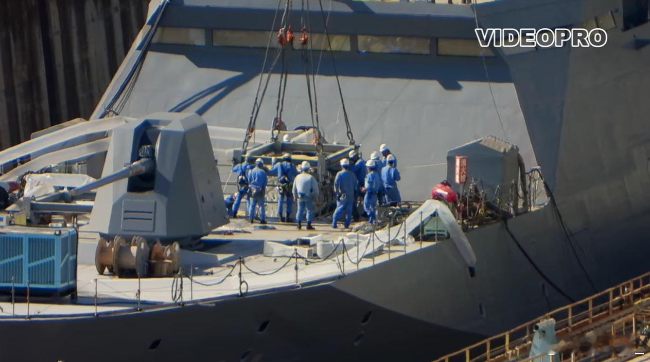 FFM-11“龙田”号护卫舰昨天在三菱重工长崎造船所进行MK-41垂射系统安装作业。此舰为最上级十一号舰,今年7月下水。