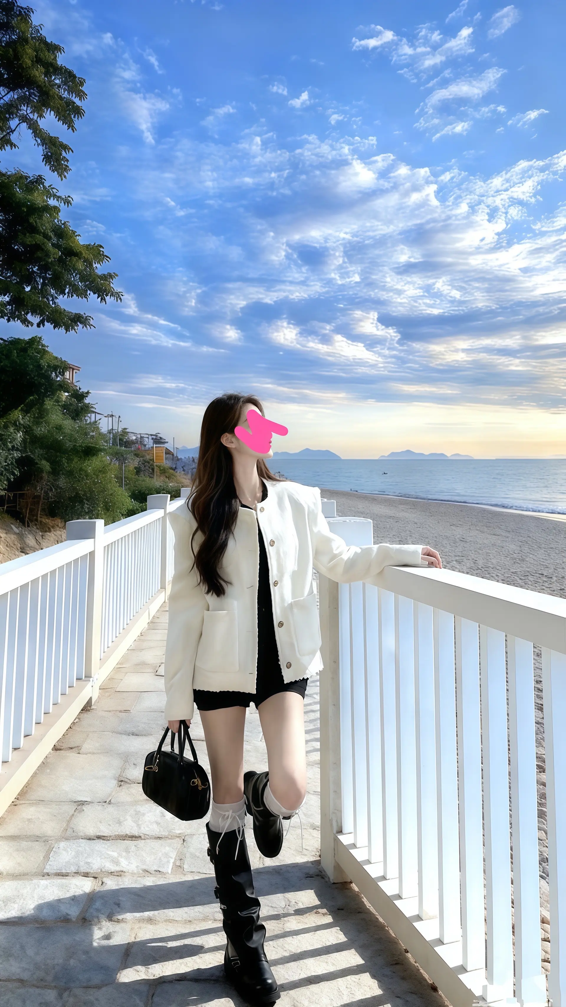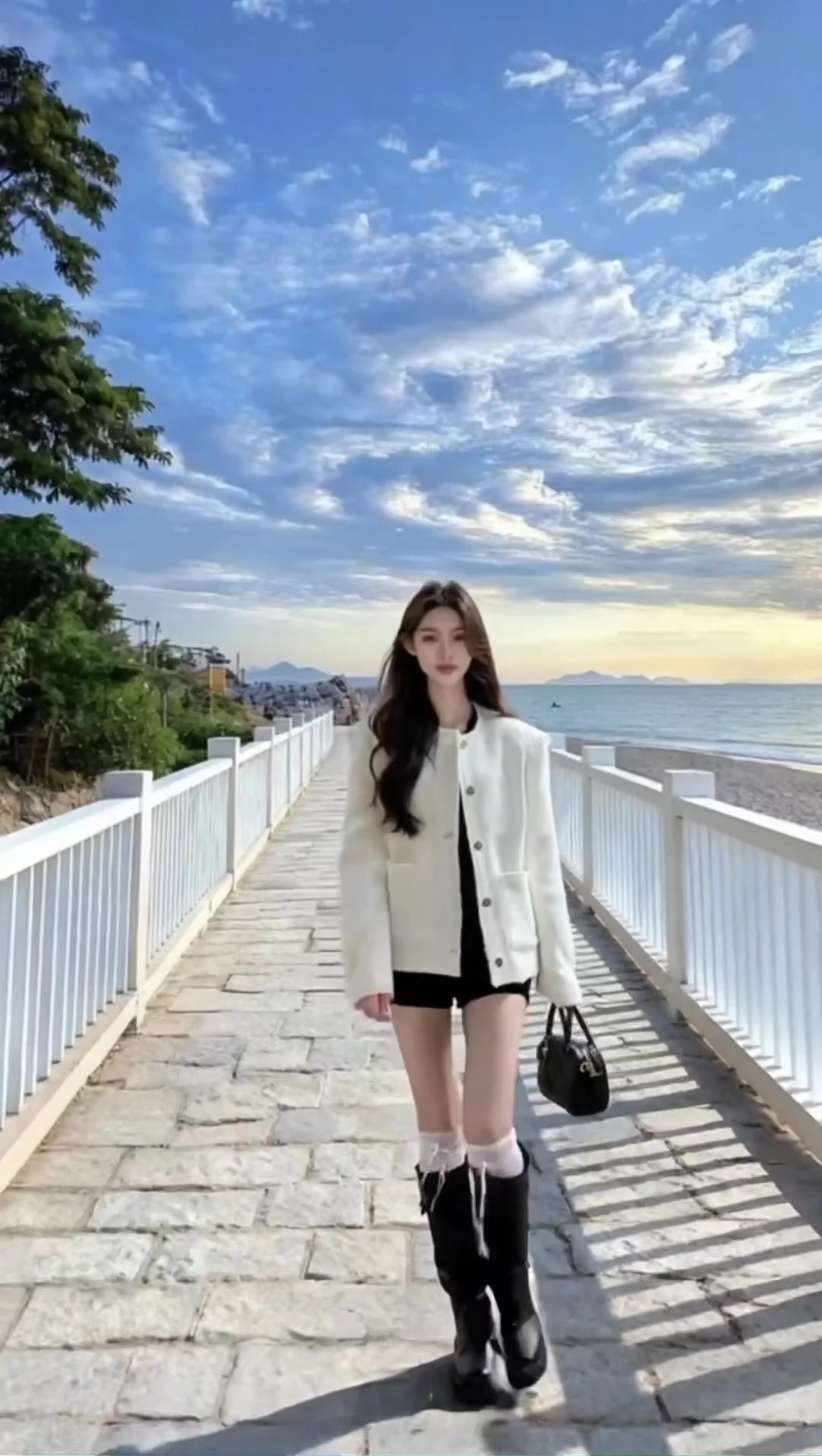 在简约雅致的空间里,灰色V领针织衫搭配棕色短裤与白色长靴,复古与时尚碰...