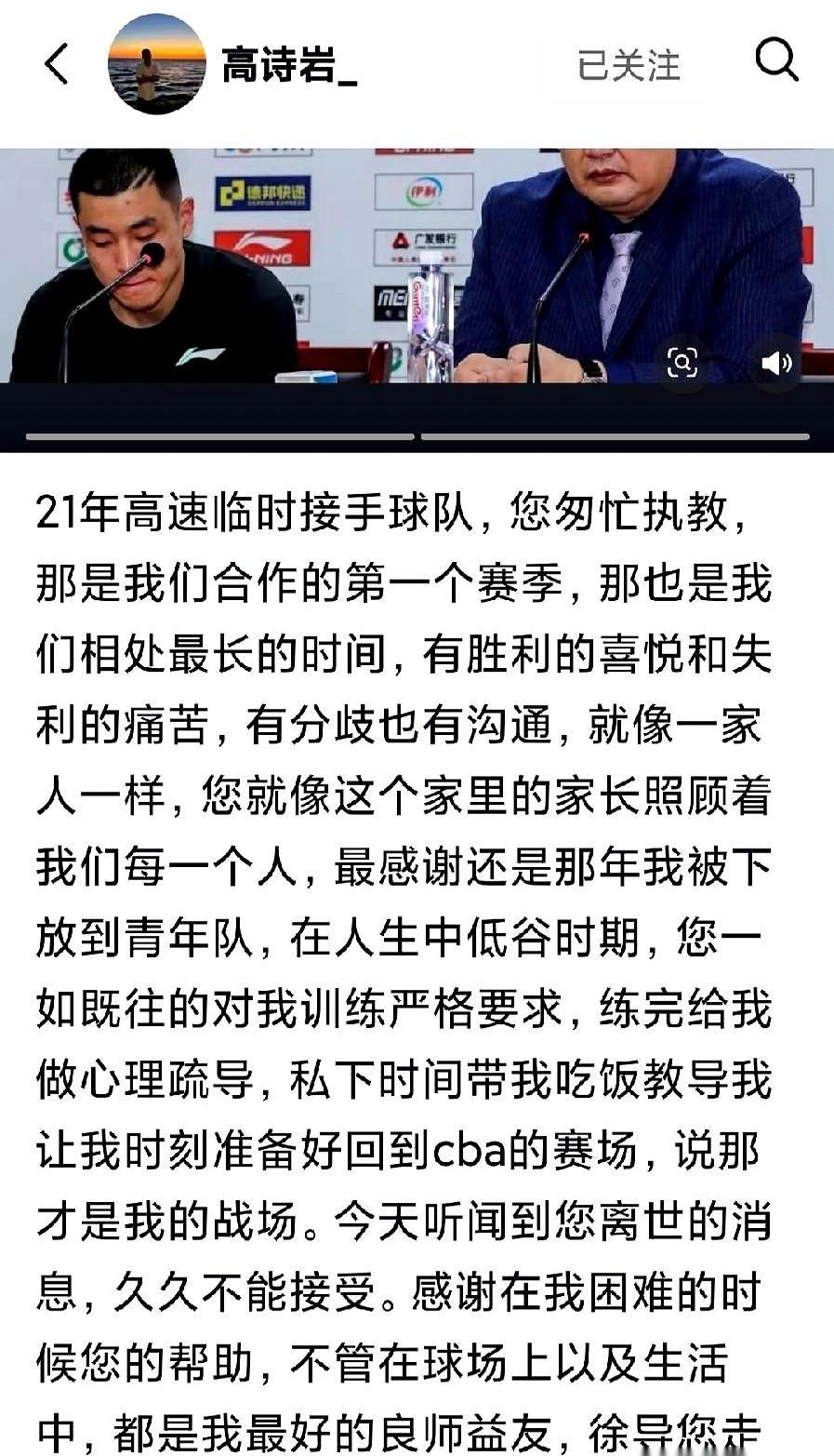 徐长锁走了,走前一周还在微信里催高诗岩练三分。 那句“CBA才是你的战场”,不是