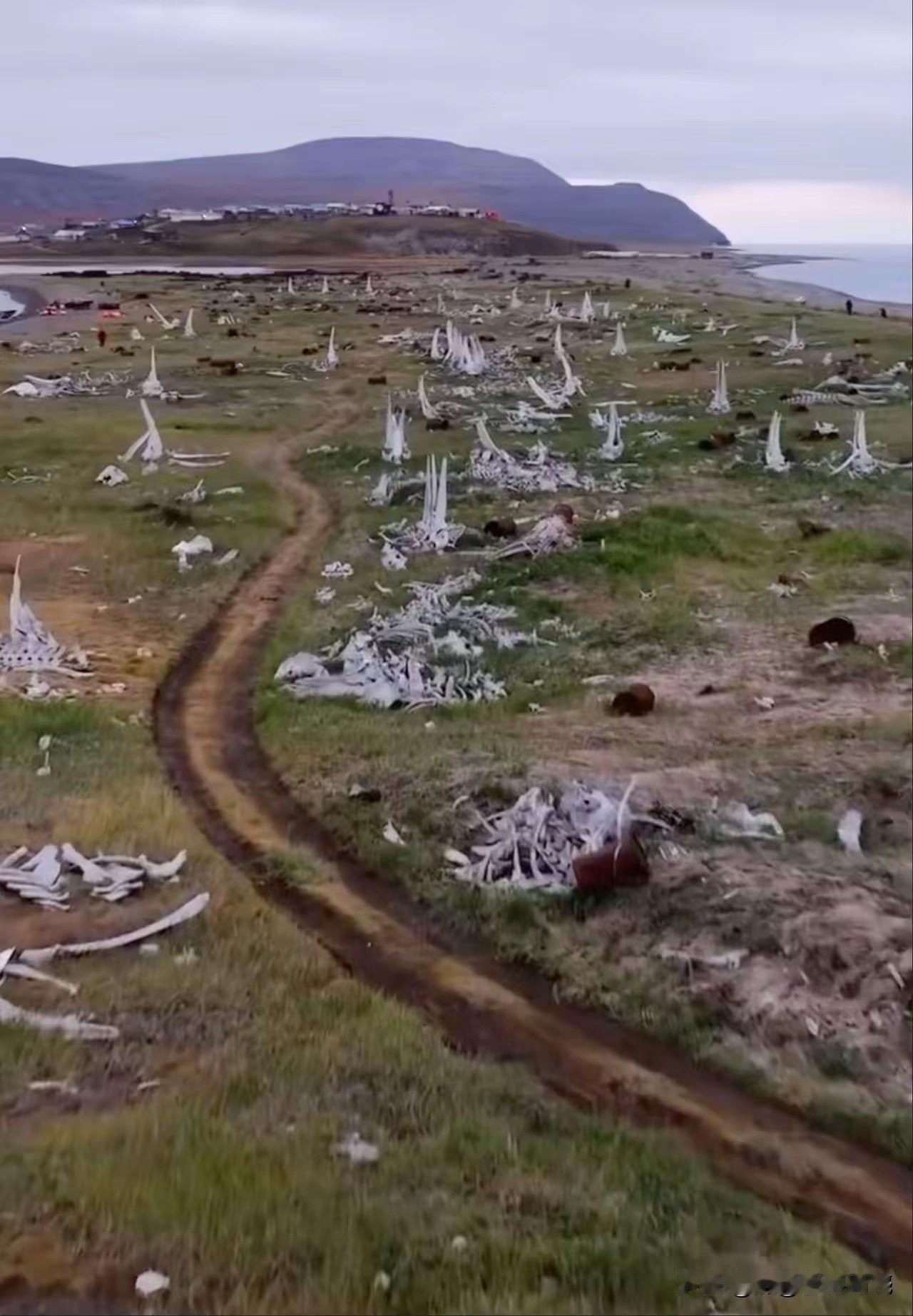 据说这是一片鲸鱼的墓地,地点在俄罗斯,如果情况属实的话,这里鲸鱼的遗骨真是太多了