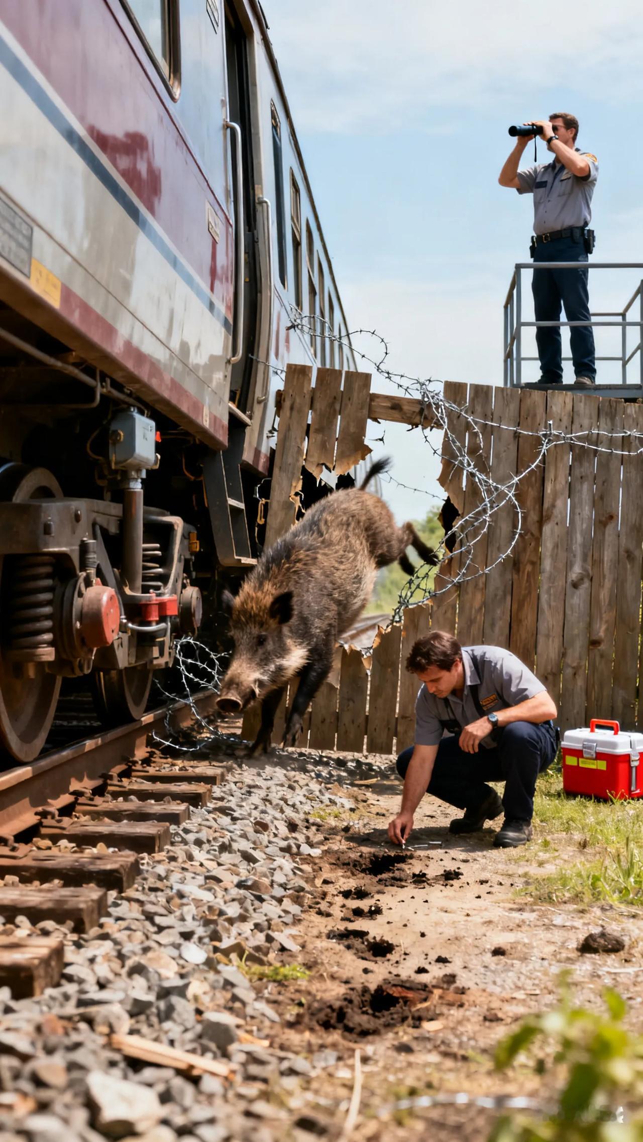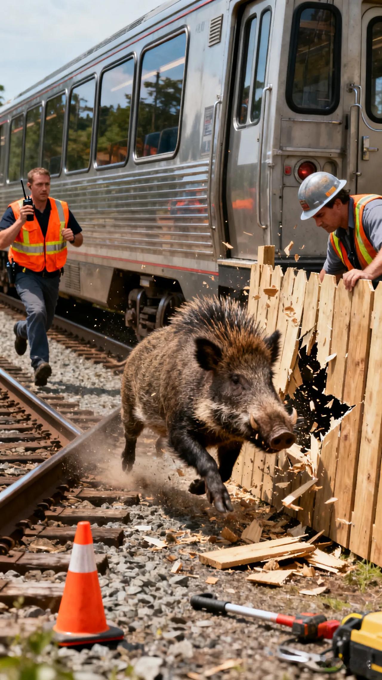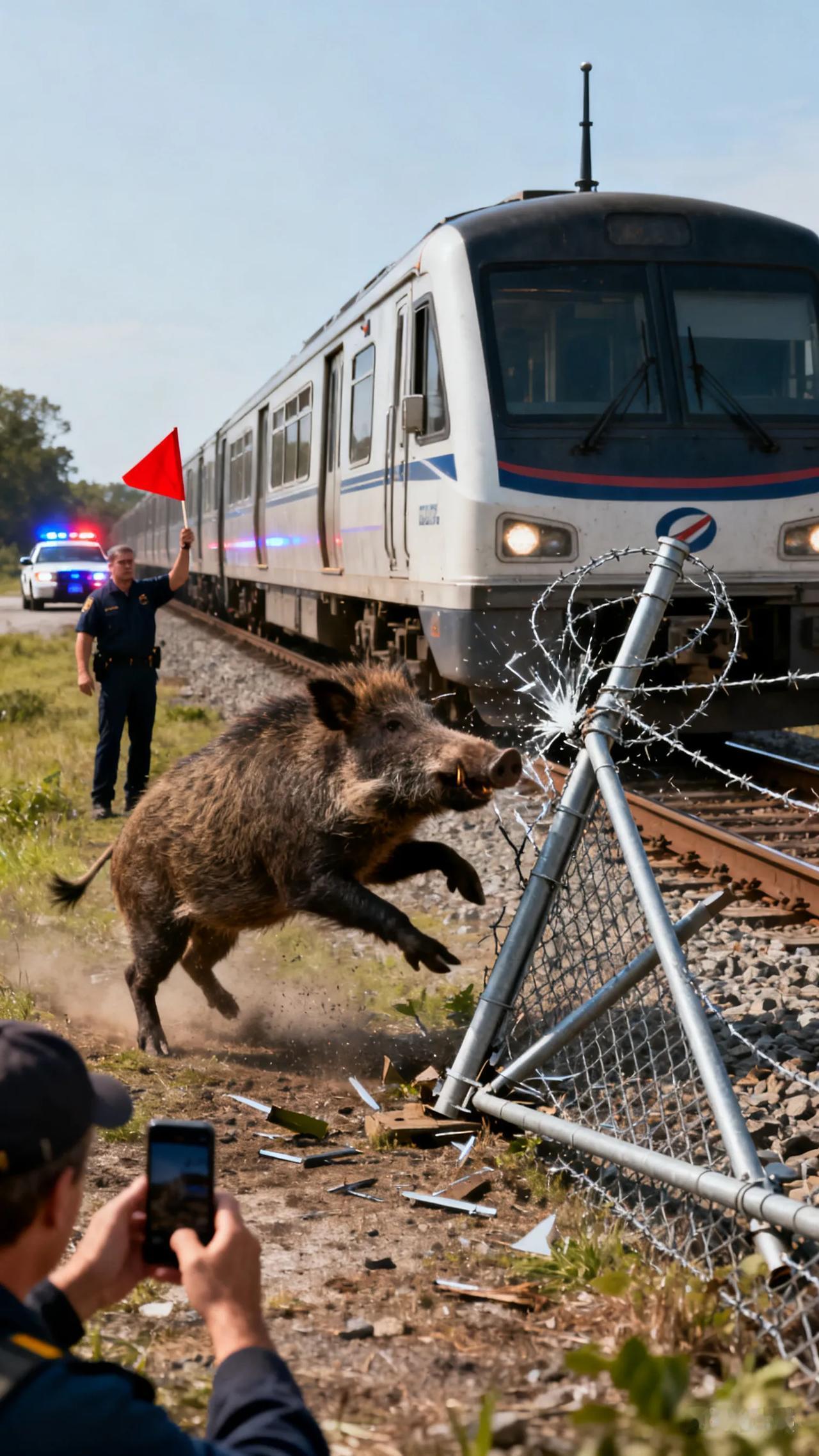 【火车撞野猪急刹停运!湖北松滋上演惊险一幕,铁路部门紧急处置】 10月9日上午8点,湖北松滋火车站附近发生惊险一幕:一头野猪咬坏铁路防护栅栏,突然闯入轨道,与正在行驶的K922次列车迎面相撞!列车紧急制动,被迫停运,现场气氛一度紧张。 事发后,铁路民警和工作人员迅速赶到,清理现场并将野猪尸体带离进行无害化处理。据宜昌车务段回应,列车在短暂停留后已恢复运行,铁路部门向受影响旅客致歉,目前线路运行正常。 网友热议:“野猪也来‘碰瓷’火车?”“铁路安全无小事,幸好无人伤亡!”这一事件再次提醒我们,野生动物防护与铁路安全需双重重视!火车站事故 野猪事故