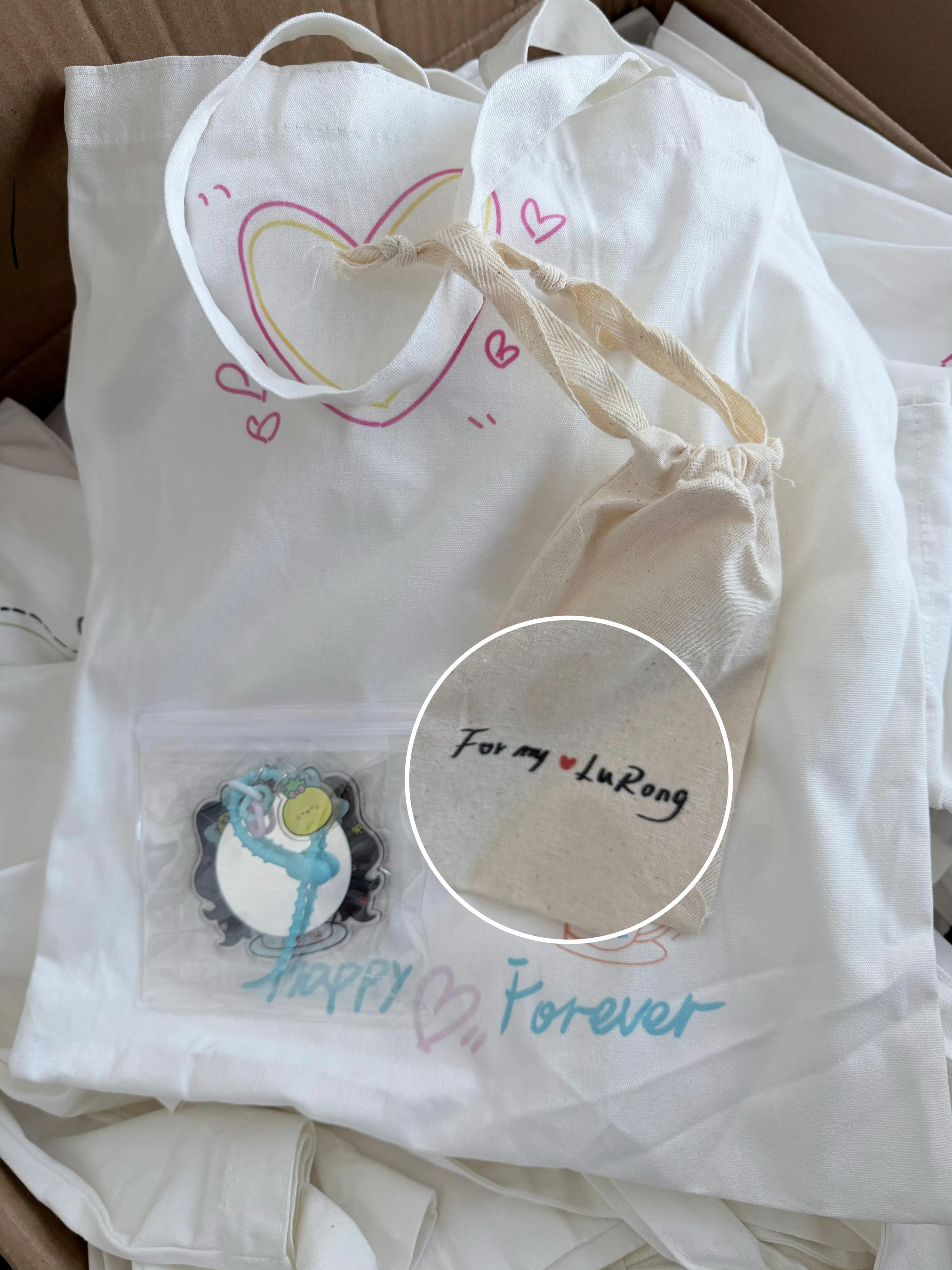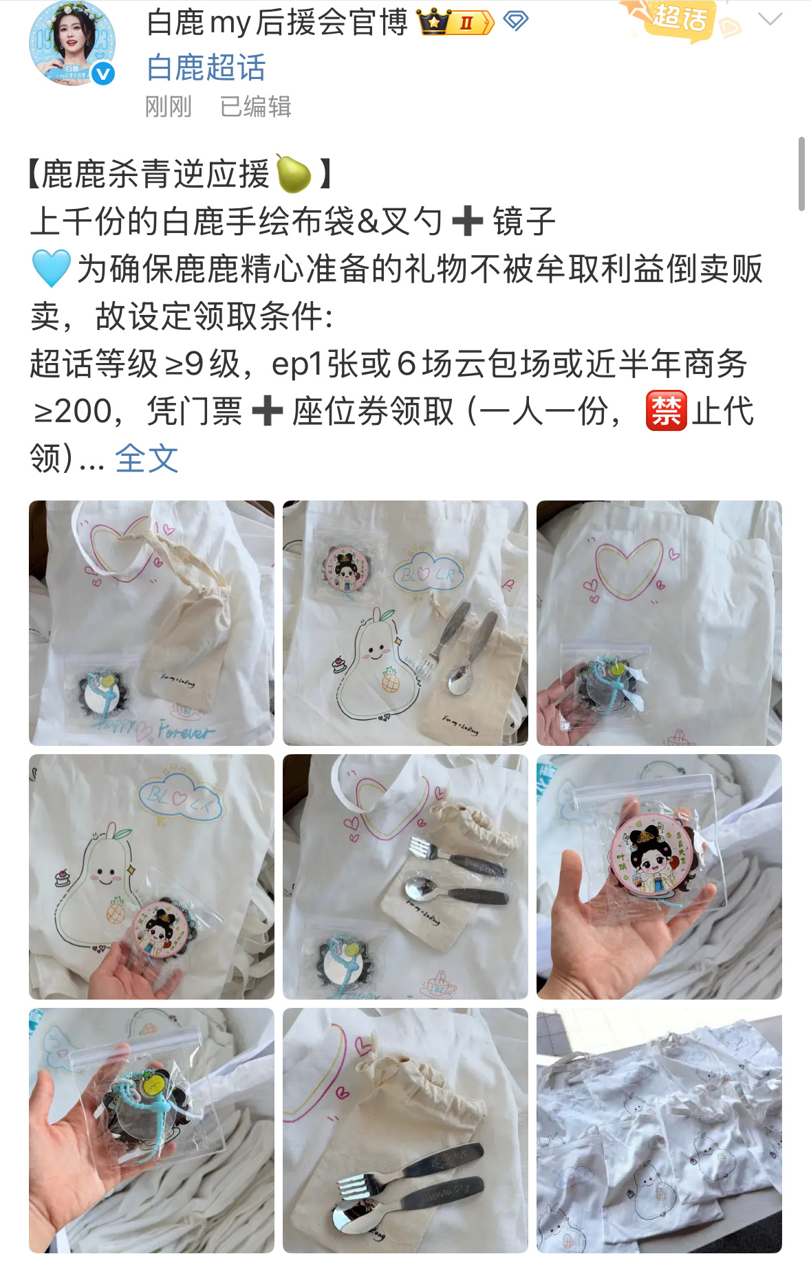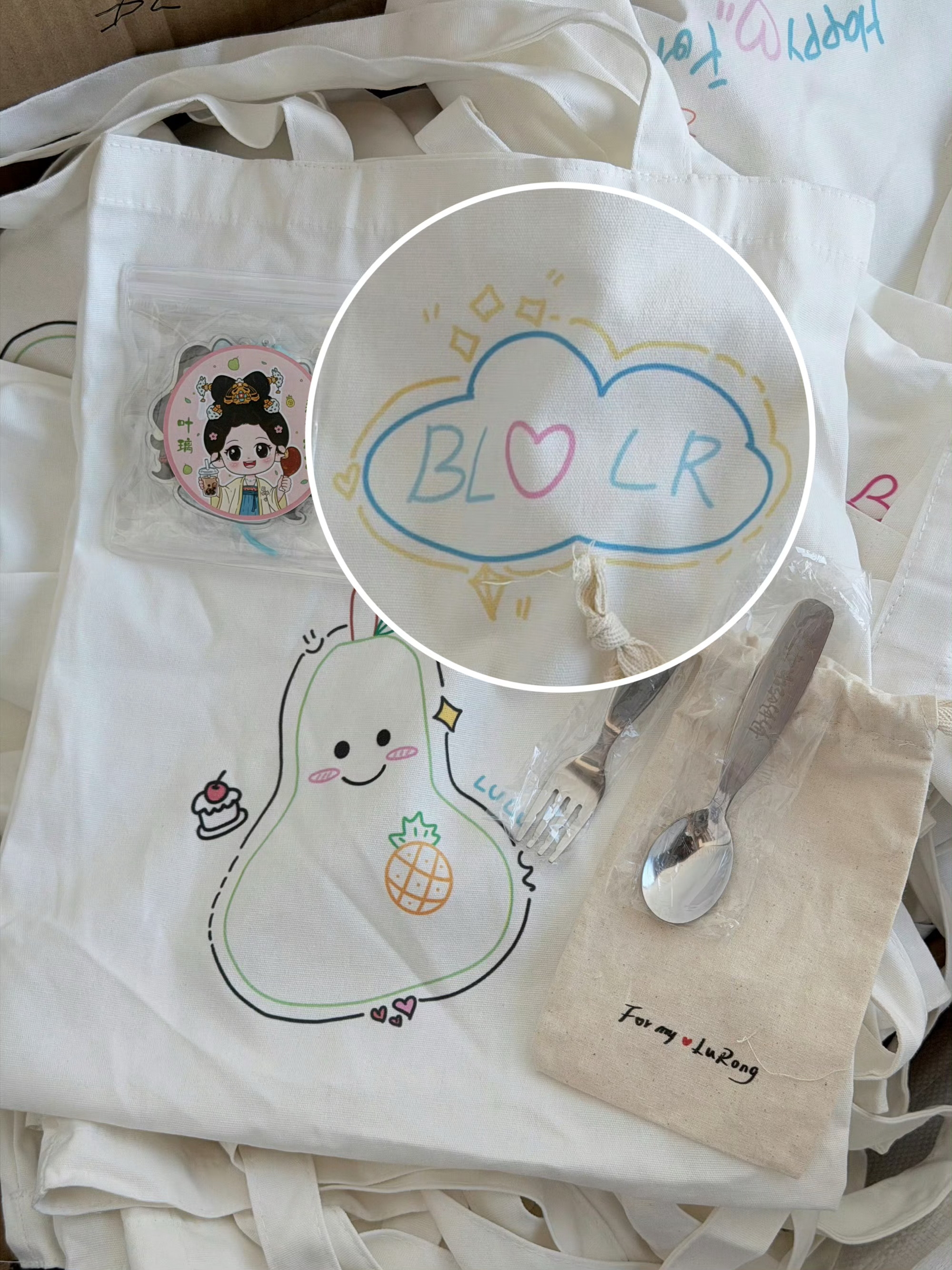 白鹿准备了上千份【亲自手绘】布袋镜子和叉勺