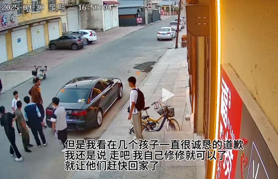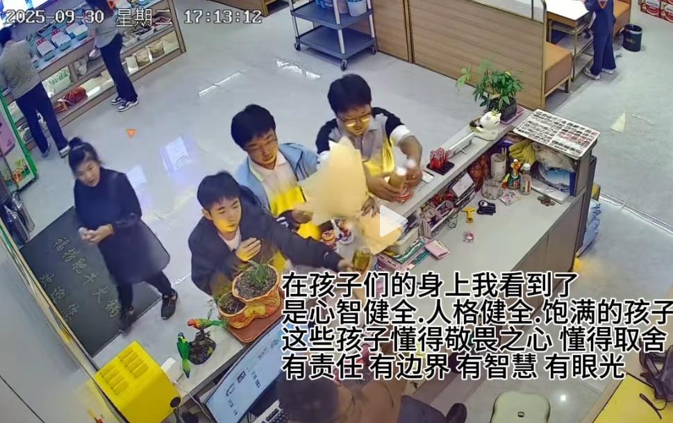 一火锅店老板在前台忙着,突然从门外进来一孩子,前来询问门口的小汽车是不是他的,被他们几个孩子剐蹭了,老板一听急忙出门来到爱车旁。 到了车跟前,好几个孩子正围着车打转,一个个低着头,小手都攥着衣角。见老板来了,其中一个孩子赶紧指着车门上的刮痕,脸涨得通红:“叔叔,就这儿,是我们骑电动车没看清楚蹭到的,真不是故意的!叔叔,对不起对不起,实在对不起!”,其他孩子也跟着小声附和:“对不起叔叔……” 老板一眼看见爱车被刮了,眉头都皱起来了,谁的宝贝车被划了能不心疼啊?但那几个孩子一直在道歉,态度又实在又诚恳,一点也不糊弄。老板心一软,直接说:“行了行了,走吧,我自己修修就可以了,下次注意点就行。”说完让他们赶快回家了。 老板本以为事情到此就结束了,没想到半个小时后,几个孩子又来店里了。 他们推开店门,有的抱着鲜花,有的买了饮料,还没等老板开口,他们就把东西全部放在了前台,离开前还不停的鞠躬表达着他们的歉意。 老板看着眼前这几个小身影,心里酸酸的,也有些莫名的感动,从孩子们身上,他分明看到了那股子难得的实在劲,有敬畏心,懂感恩,敢担责! 老板觉得这事很有教育意义,就把监 控视频发到了网络上,没想到它一下火了! 有网友说,老板大气,有格局,明年换A8顶配。 也有网友说,刮车的是那个拿着花的孩子,一开始他不敢来问,是他的朋友来问老板,后面也是他的朋友带着他进门送花道歉,右边那孩子推了他一把让他鞠躬道歉,这证明朋友很重要!人嘛,都是这样的,你尊重尊重别人,别人也尊重尊重你,你体谅体谅别人,别人也体谅体谅你。 其实,人和人相处不应该就这样嘛!你退一步体谅,我多一分真诚,这点暖心的小互动,比啥都让人觉得舒服。有时候一句实在的道歉,一个包容的摆手,就能把小事化成暖心事,这样的画面,谁看了不觉得心里亮堂呢!