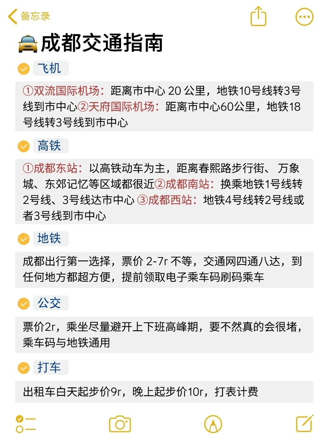 1️⃣如果你是第一次来成都,那千万不要选择租车出行,成都地铁四通八达,卡卡角角都能到达