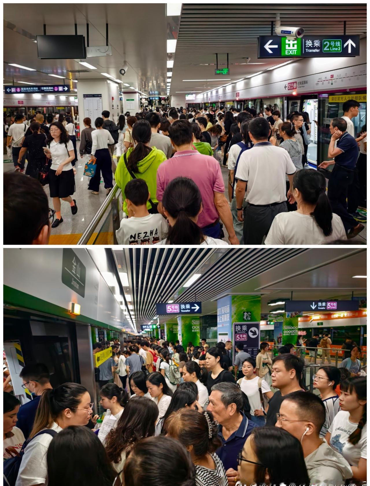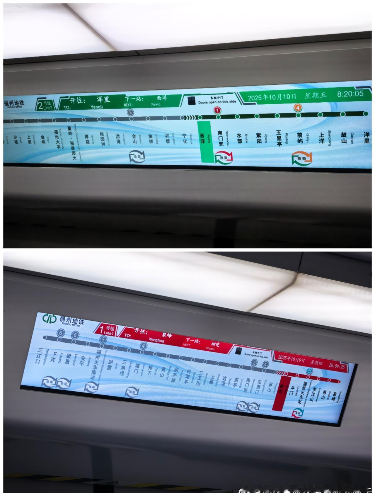 08:07,凤岗里~金山区间客流(荆溪方向,图1)。 08:09-11,金山站出站和换乘2号线以及2号线往鼓山方向候车客流(图2)。 08:12,金山→金祥区间(图3)。 08:14,金祥→祥坂区间(图4)。 08:19,宁化→西洋区间(图5),以及,2号线与昨晚偶遇的1号线「新车」(0224→0129)车门上PIS屏幕对比(图6)。 08:23,南门兜站出站和换乘1号线客流(图7)。