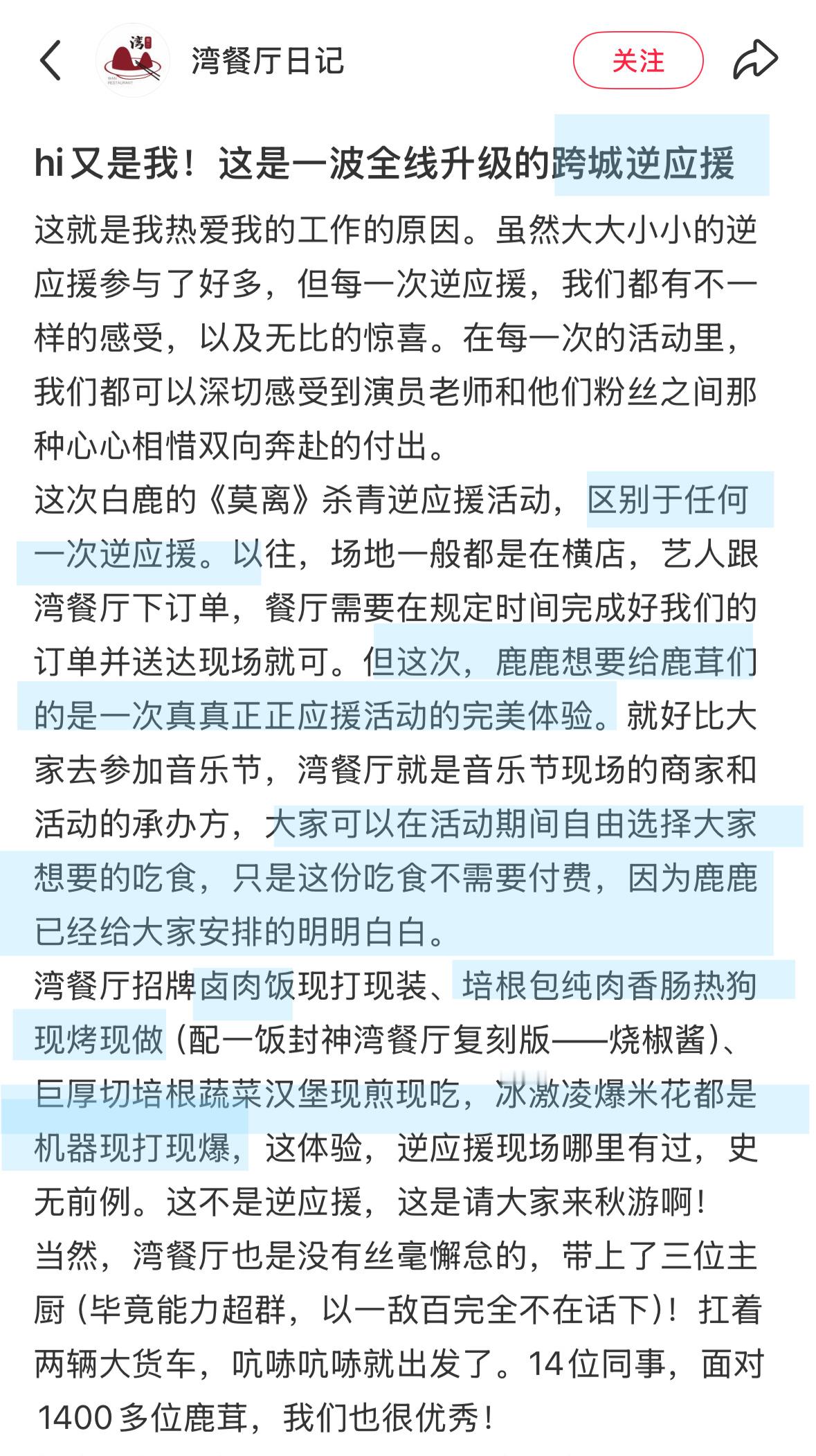 白鹿逆应援又又又来了 请人来到现场制作逆应援餐食💧