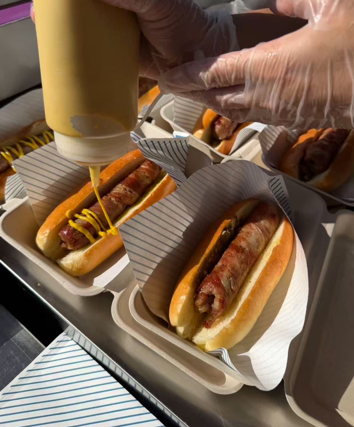 卤肉饭现打现装 培根包纯肉香肠热狗现烤现做 巨厚切培根蔬菜汉堡现煎现吃 冰淇淋爆米花也是现场制作 还有美味的饮料舒舒服服!