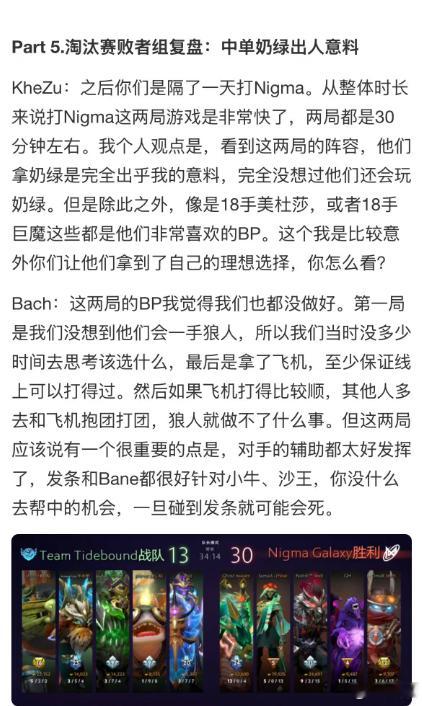 巴哥和官方解说Khezu聊今年TI,多次谈到了战车的BP不行,这和我看比赛的感觉一样,战车好多局,BP完感觉就Gdota2