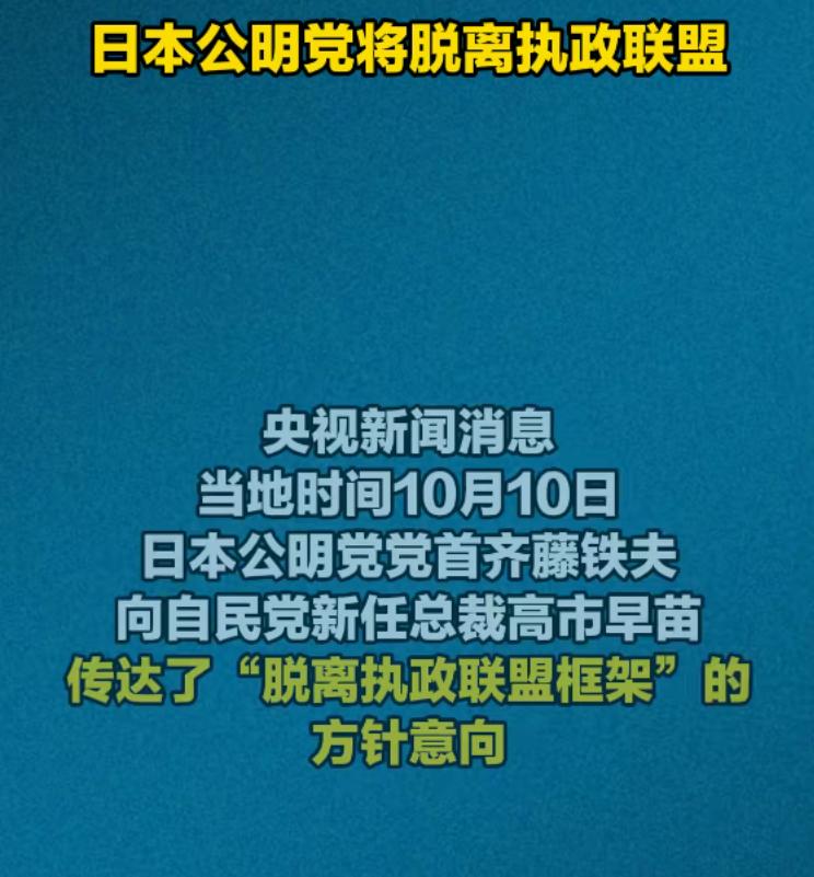 日本公明党决定与自民党解除执政联盟关系!果然不出意外的,日本内部陷入了分裂,高市