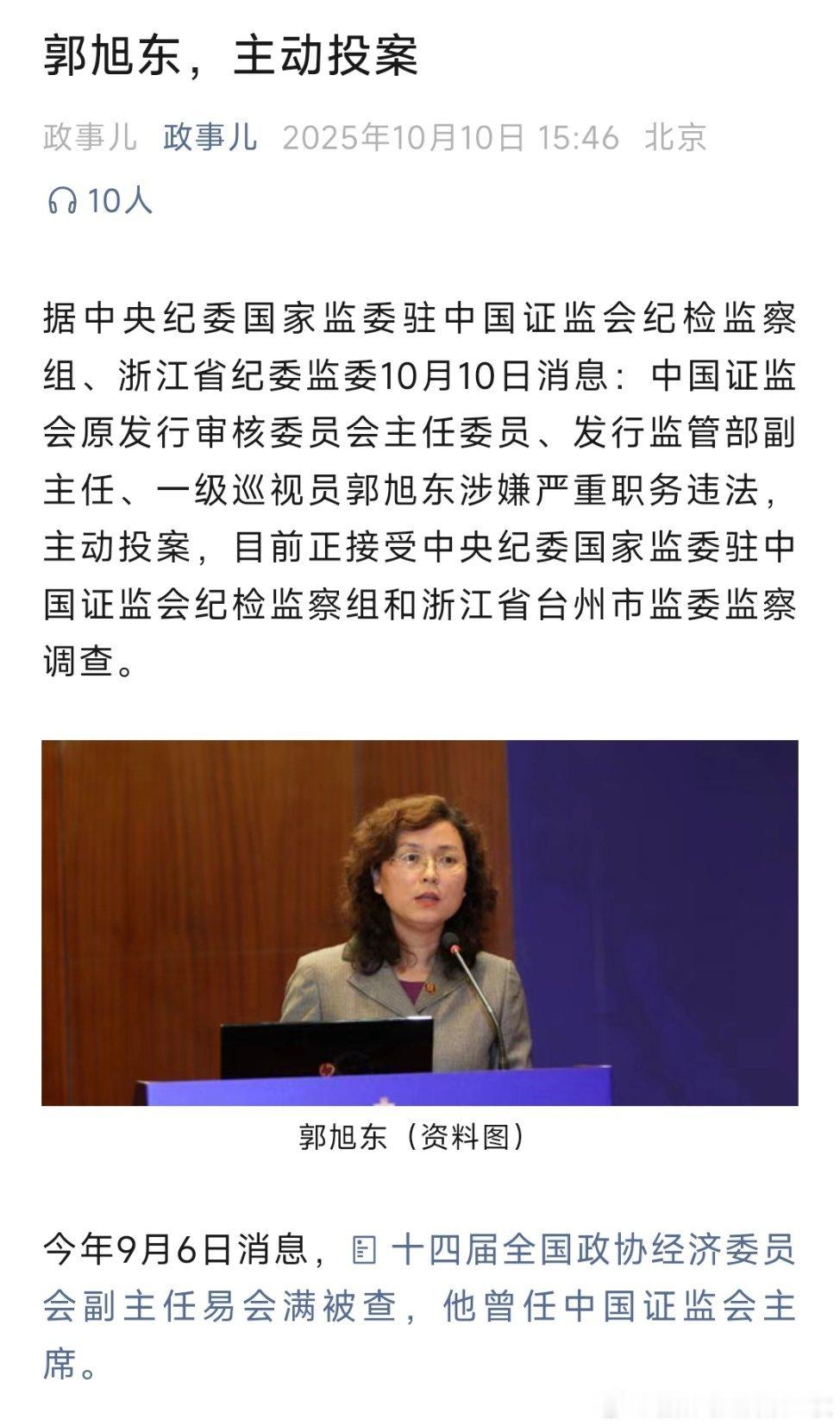 中国证监会原发行审核委员会主任委员、发行监管部副主任、一级巡视员郭旭东接受监察调查!热点现场